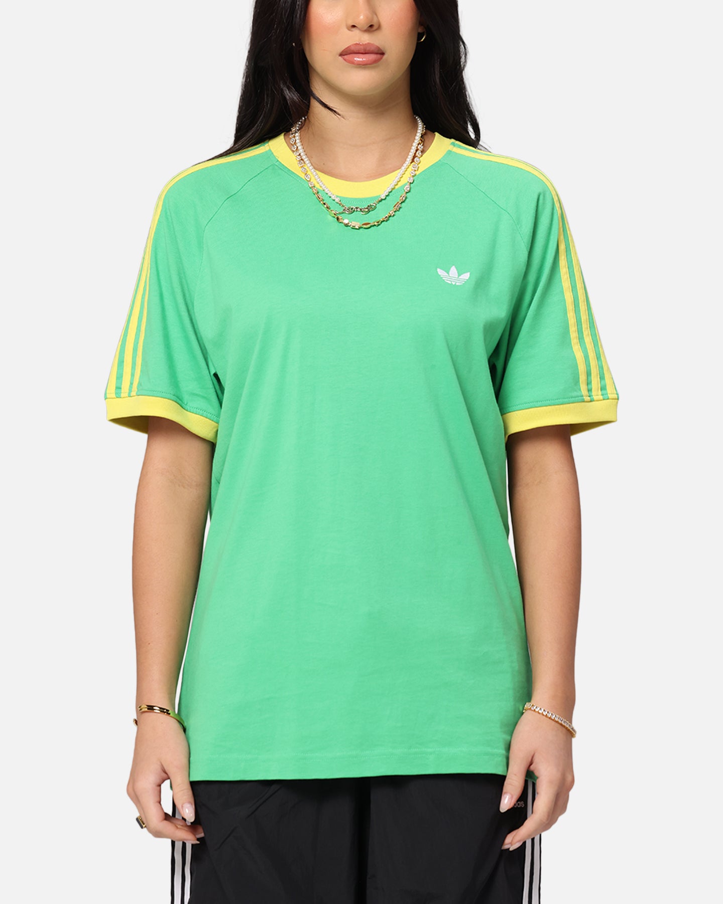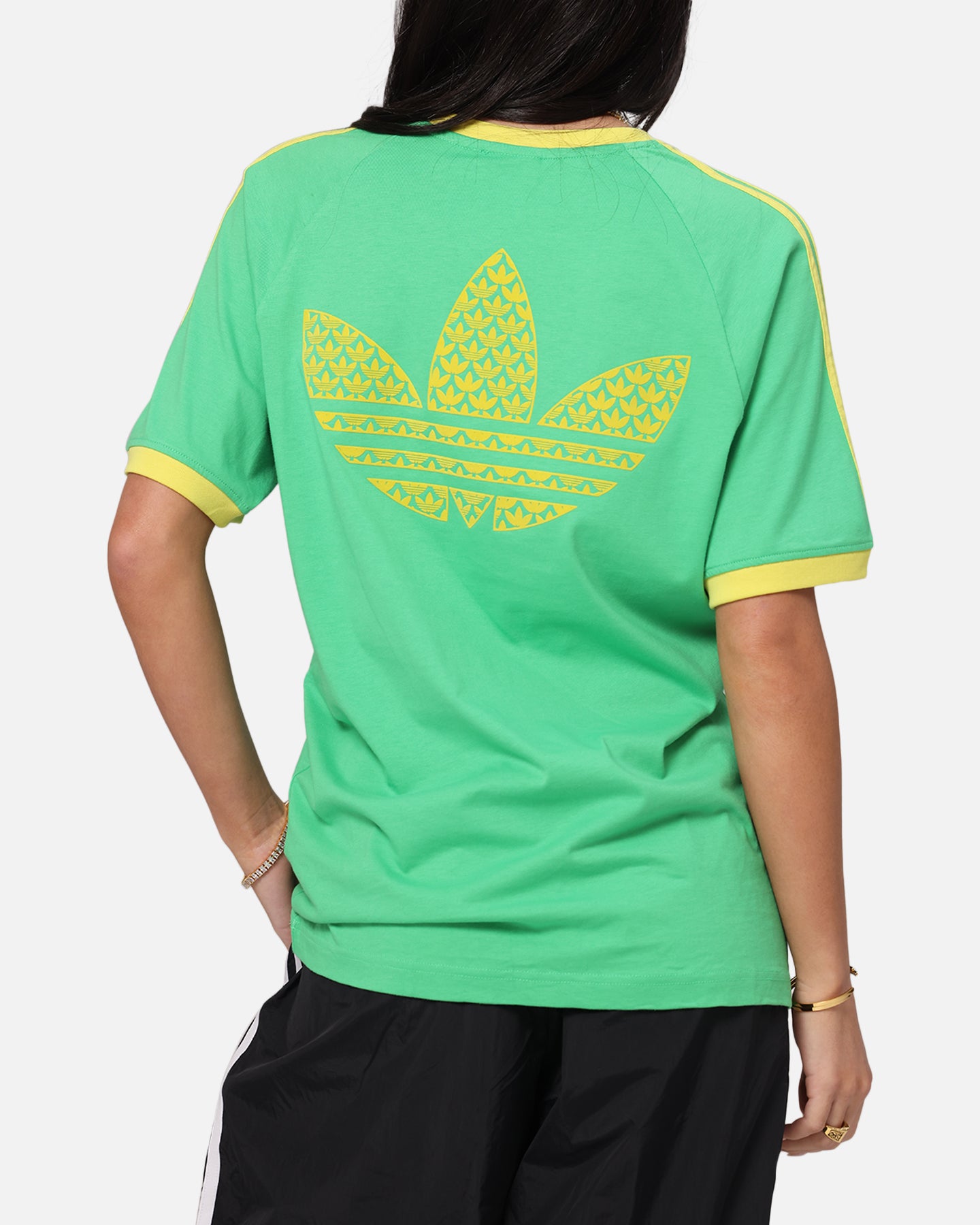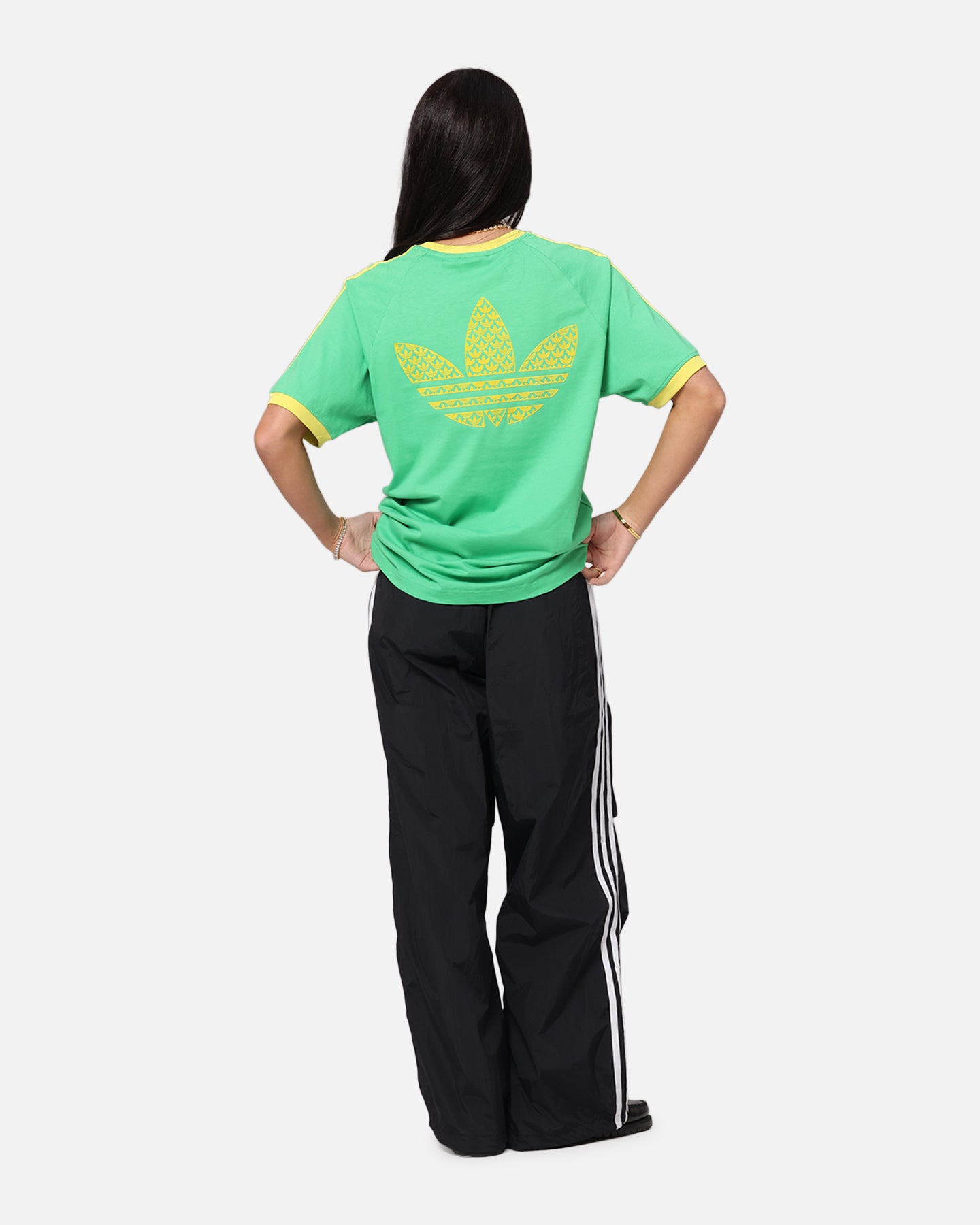 Your vibe attracts your tribe, and this adidas t-shirt is all about good vibes. The slim fit hugs the body for a look that's always on point. Ribbed cuffs add a classic finish and a touch of texture. An oversized Trefoil on the back makes a statement with an infill Trefoil monogram print. Cop yours today at Culture Kings.- Embroidered logo- Contrast ribbed crewneck- Twin-needle stitching- Dropped shoulders- Trefoil monogram print- Regular fit- Material: 100% Cotton- Colour: Green- Style: JP4432