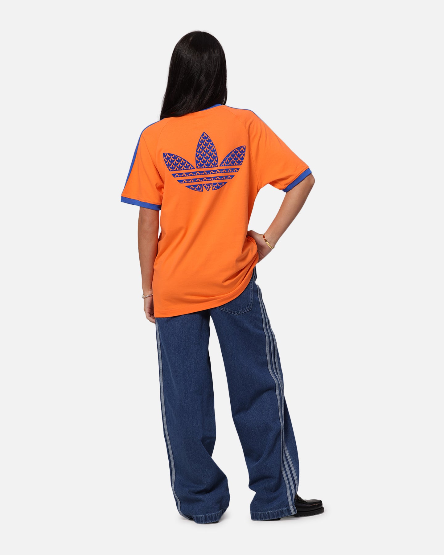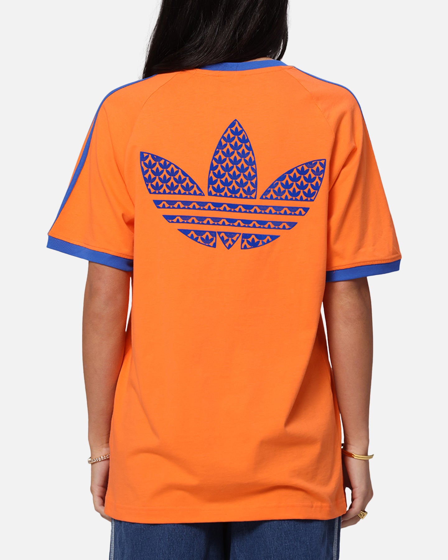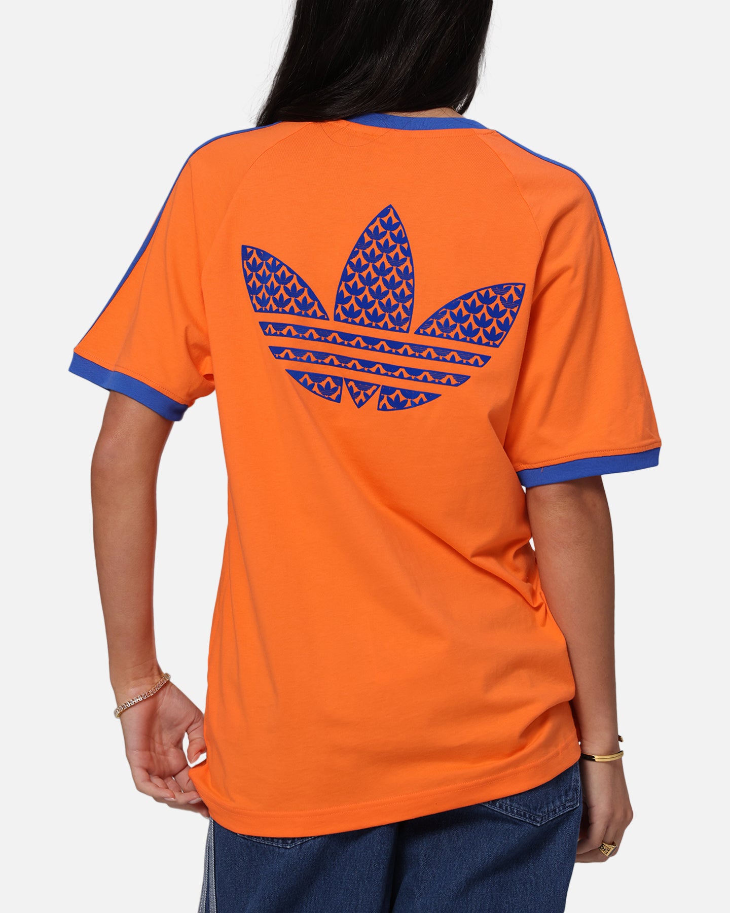 Your vibe attracts your tribe, and this adidas t-shirt is all about good vibes. The slim fit hugs the body for a look that's always on point. Ribbed cuffs add a classic finish and a touch of texture. An oversized Trefoil on the back makes a statement with an infill Trefoil monogram print. Cop yours today at Culture Kings.- Embroidered logo- Contrast ribbed crewneck- Twin-needle stitching- Dropped shoulders- Trefoil monogram print- Regular fit- Material: 100% Cotton- Colour: Orange- Style: JP4431