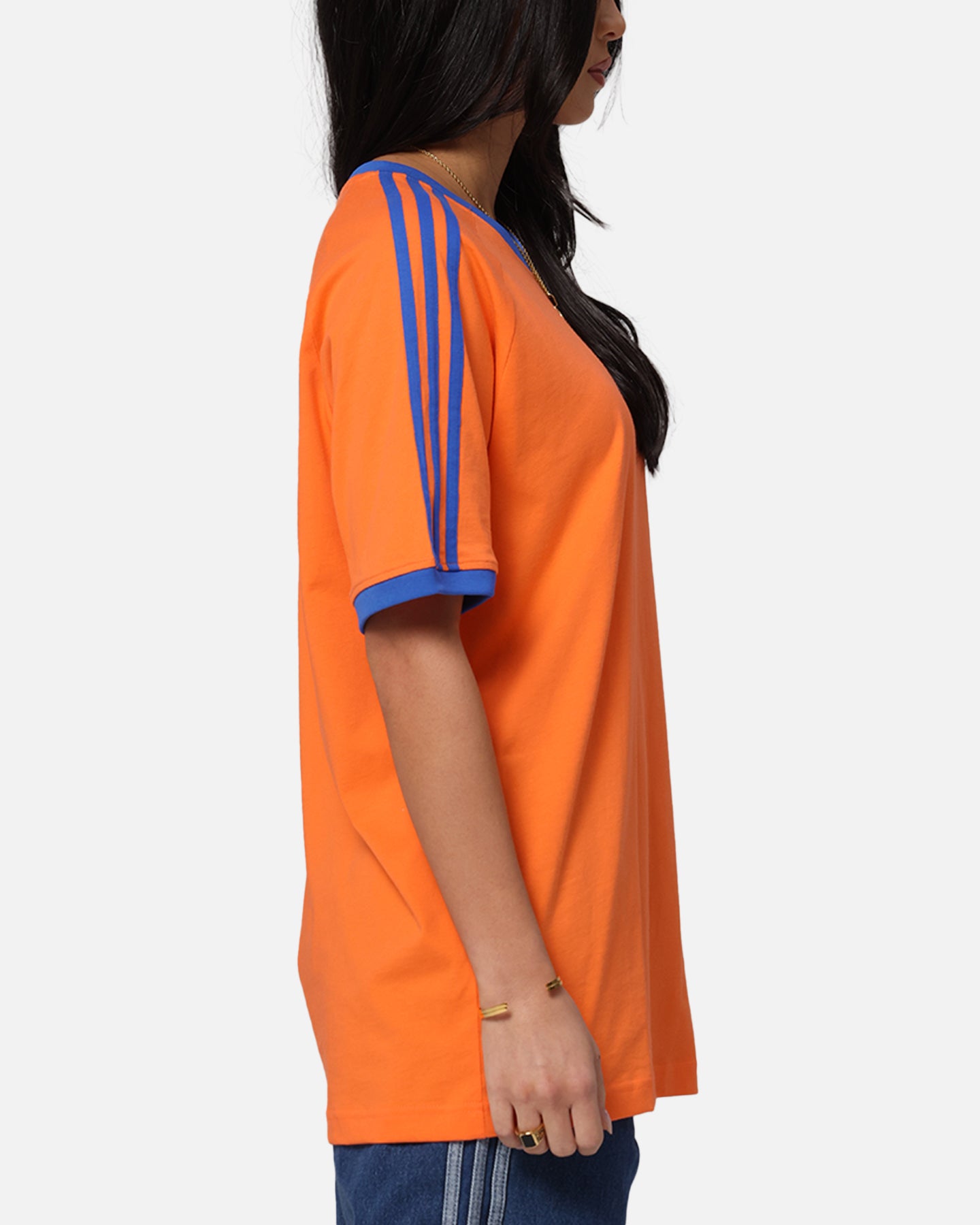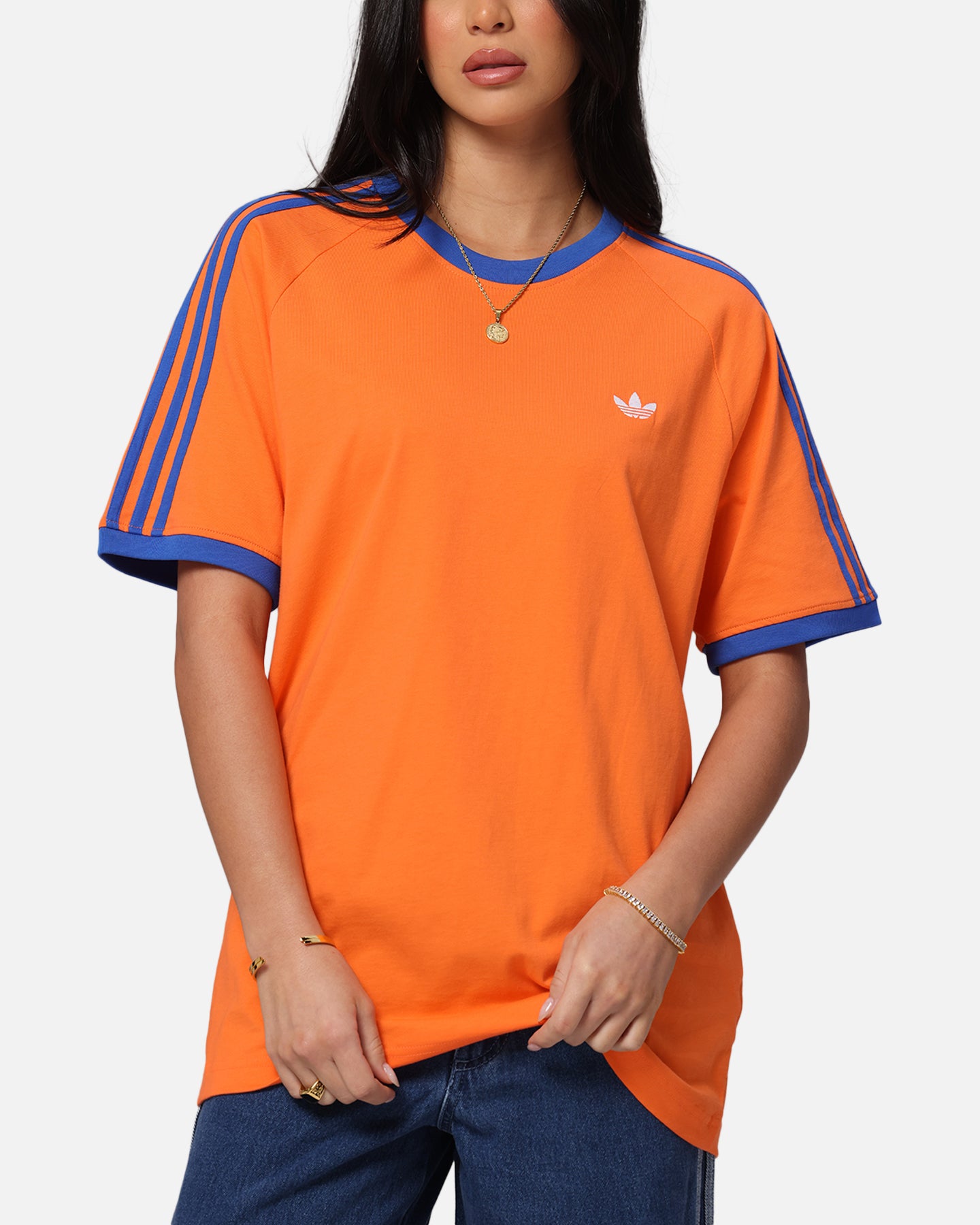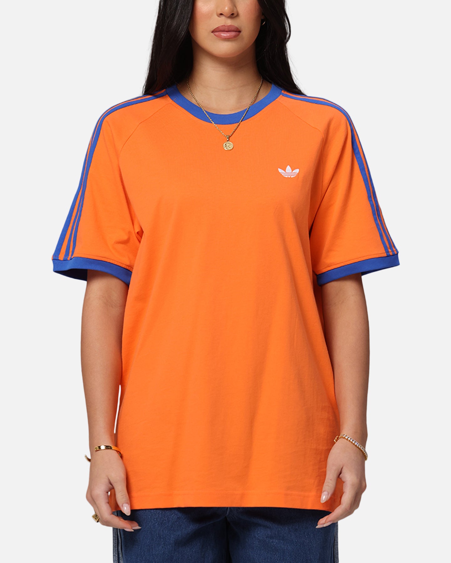 Your vibe attracts your tribe, and this adidas t-shirt is all about good vibes. The slim fit hugs the body for a look that's always on point. Ribbed cuffs add a classic finish and a touch of texture. An oversized Trefoil on the back makes a statement with an infill Trefoil monogram print. Cop yours today at Culture Kings.- Embroidered logo- Contrast ribbed crewneck- Twin-needle stitching- Dropped shoulders- Trefoil monogram print- Regular fit- Material: 100% Cotton- Colour: Orange- Style: JP4431
