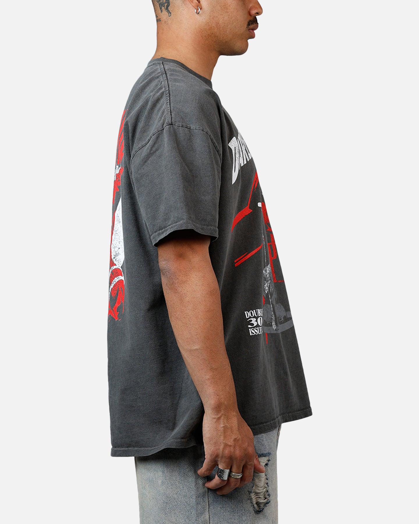 Please note that our heavyweight tees provide extra room, offering more than just an oversized fit. We recommend sizing down from your usual size for a more standard fit.The streets of Hell's Kitchen never looked so good. With bold printed graphics of Daredevil straight from the comic pages, this tee is a must-cop for true Marvel fans. Built to last, this heavyweight cotton material gives you that premium feel, while the ribbed crewneck delivers ultimate comfort. Whether you’re flexing your style or repping your favorite hero, this shirt brings the heat. Cop yours today at Culture Kings.We strongly recommend washing these garments in cold water before use to avoid bleeding and only with like-coloured garments following this to protect all your ‘fits from any potential staining.- Collaboration- Printed graphics- Dropped shoulders- Ribbed crewneck- Twin-needle stitching- Short sleeves- Acid wash- Fits large- Material: 100% Cotton- Colour: Black Wash- Style: ATDRDVLCMCT