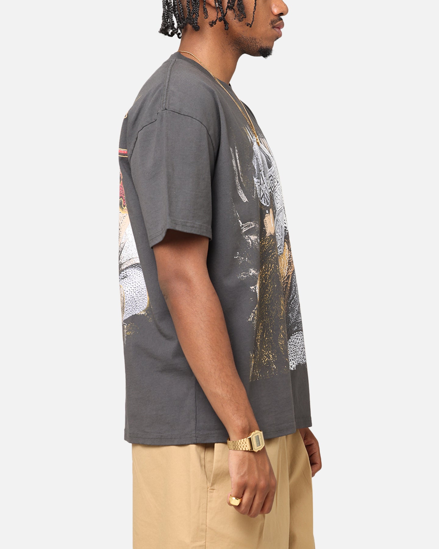 Get your slice of the fellowship with the latest epic collaboration from American Thrift X The Lord Of The Rings! A world-exclusive collection featuring custom-printed graphics of all your favourite Middle Earth heroes and villains with a vintage wash, dropped shoulders and finished on a premium cotton construction for ultimate comfort. Get your hands on this tee and pick your side!- Collaboration- Custom printed graphics- Dropped shoulders- Ribbed crewneck- Twin needle stitching- Short sleeve- Regular fit- Material: 100% Cotton- Colour: Black Wash- Style: ATGIMLIHVSST