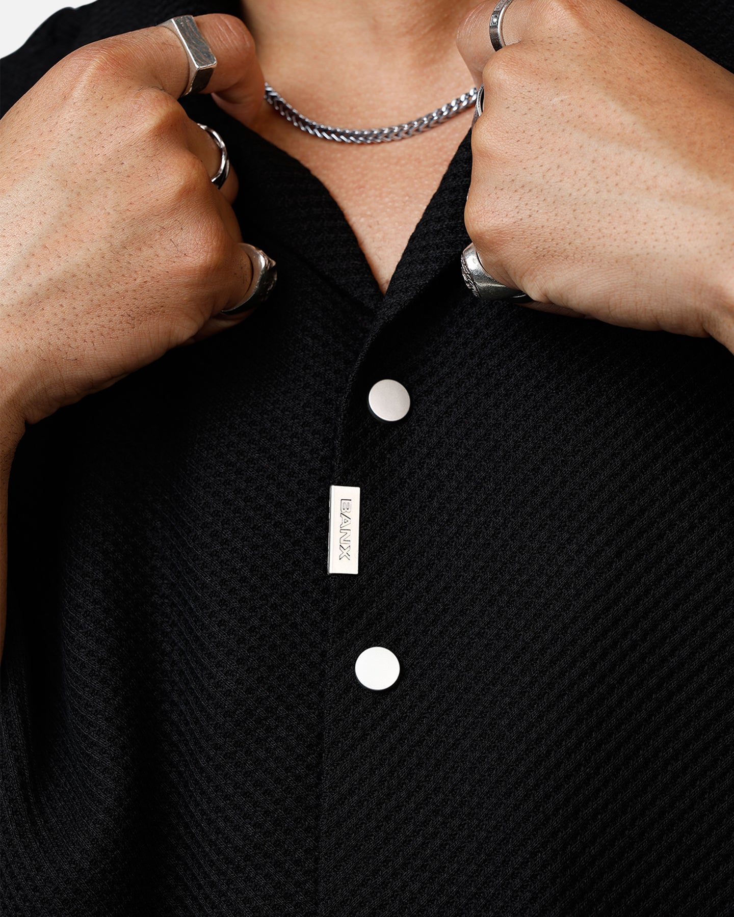 Upgrade your wardrobe with the must-have Signature Waffle Button Up Shirt from BANX. Combining fashion-forward style and everyday comfort, these pieces are essential for any fashion enthusiast. Cop yours today at Culture Kings.- Waffle knit- Twin-needle stitching- Dropped shoulders- Full button up close- Collared- Relaxed fit- Material: 100% Cotton- Colour: Black- Style: SG-WAF-BUT-BLK