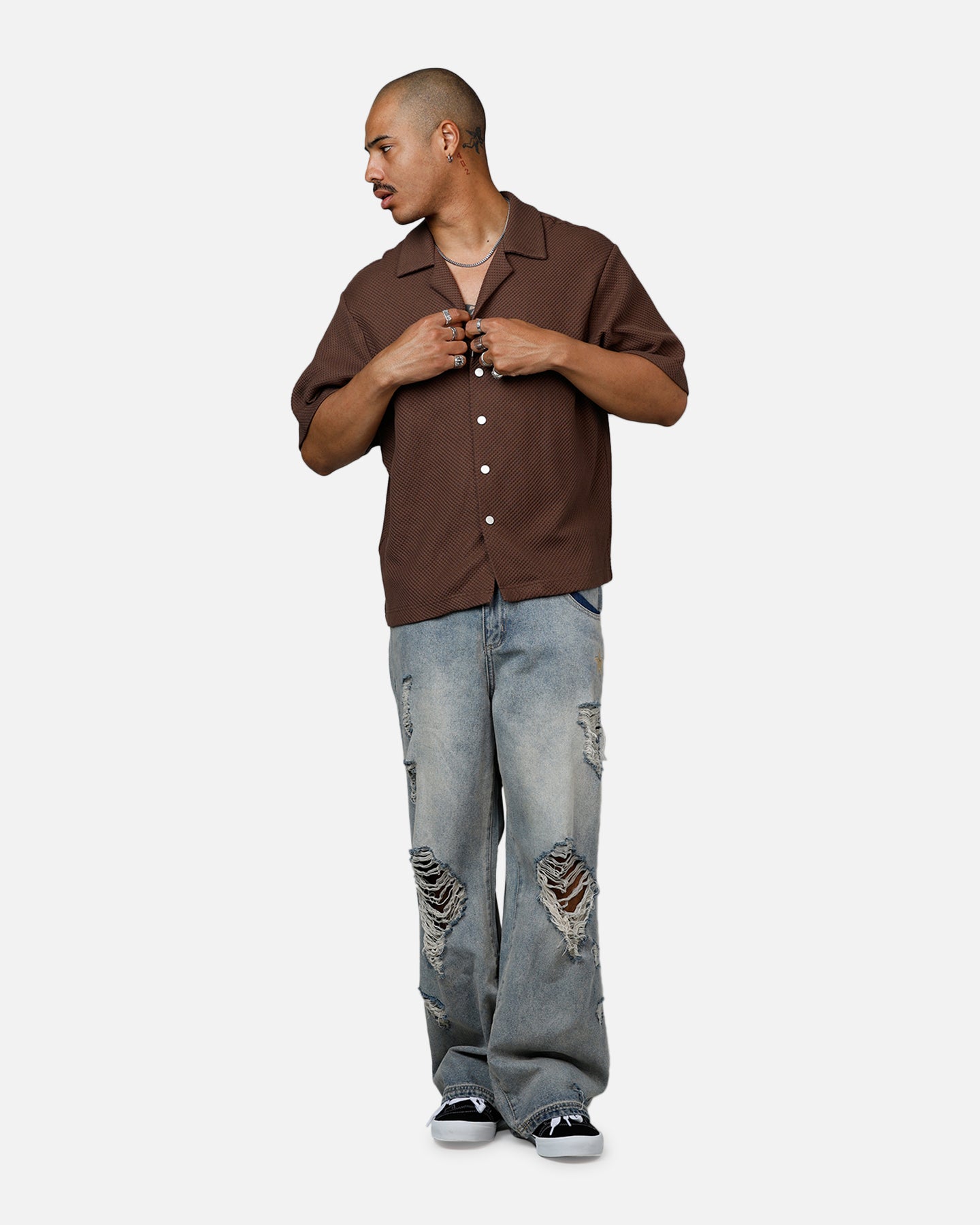 Upgrade your wardrobe with the must-have Signature Waffle Button Up Shirt from BANX. Combining fashion-forward style and everyday comfort, these pieces are essential for any fashion enthusiast. Cop yours today at Culture Kings.- Waffle knit- Twin-needle stitching- Dropped shoulders- Full button up close- Collared- Relaxed fit- Material: 100% Cotton- Colour: Brown- Style: SG-WAF-BUT-BRN