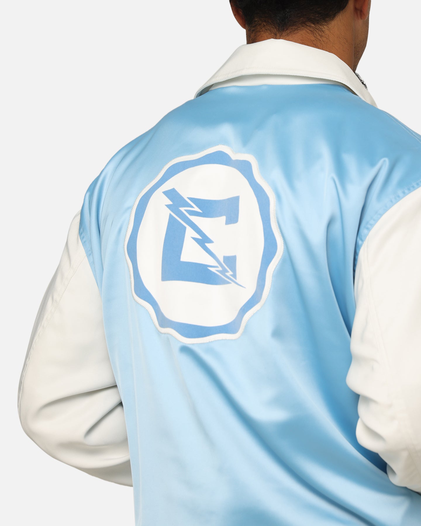 Stand out from the rest with the Champion 50's Team Captain Jacket. It features embroidered graphics a full-zip closure and a snap button up cuffs to keep you warm in this chilly season. Cop yours today at Culture Kings.- Embroidered graphics- Ribbed trims- Full zip-up close- Collared- Snap button up cuffs- Dual side pockets- Regular fit- Colour: Pale Blue- Style: ATN9A1