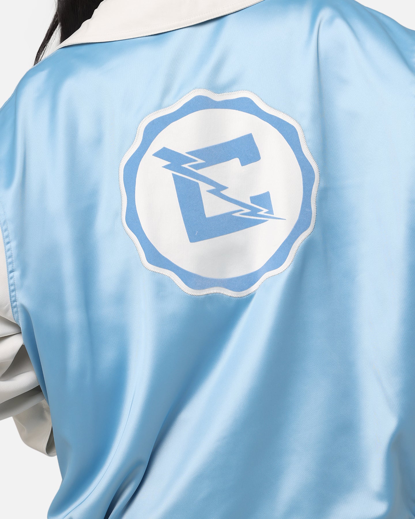 Stand out from the rest with the Champion 50's Team Captain Jacket. It features embroidered graphics a full-zip closure and a snap button up cuffs to keep you warm in this chilly season. Cop yours today at Culture Kings.- Embroidered graphics- Ribbed trims- Full zip-up close- Collared- Snap button up cuffs- Dual side pockets- Regular fit- Colour: Pale Blue- Style: ATN9A1