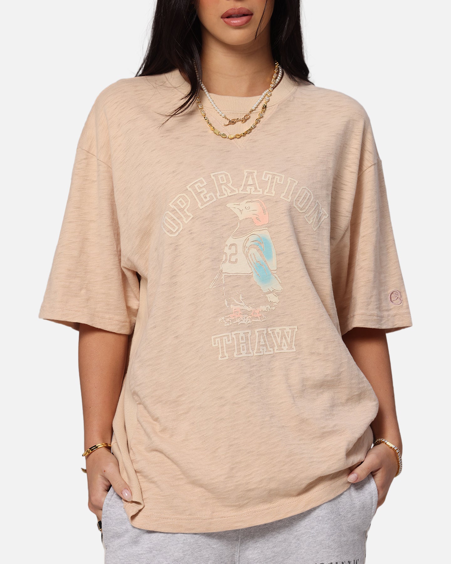 This new release from Champion's Archives collection is a tribute to the iconic campus wear of the '40s and '50s, and a nod to Champion's legendary history. Reimagined classic pieces straight from the archives – think sun-faded heavy knits and that perfect, worn-in feel. It’s all about blending Champion’s legacy of innovation and craftsmanship with a fresh, modern edge. Cop the pieces today at Culture Kings.- Printed graphics- Dropped shoulders- Ribbed crewneck- Twin-needle stitching- Short sleeves- Relaxed fit- Material: 100% Cotton- Colour: Mocha- Style: ATN4A1