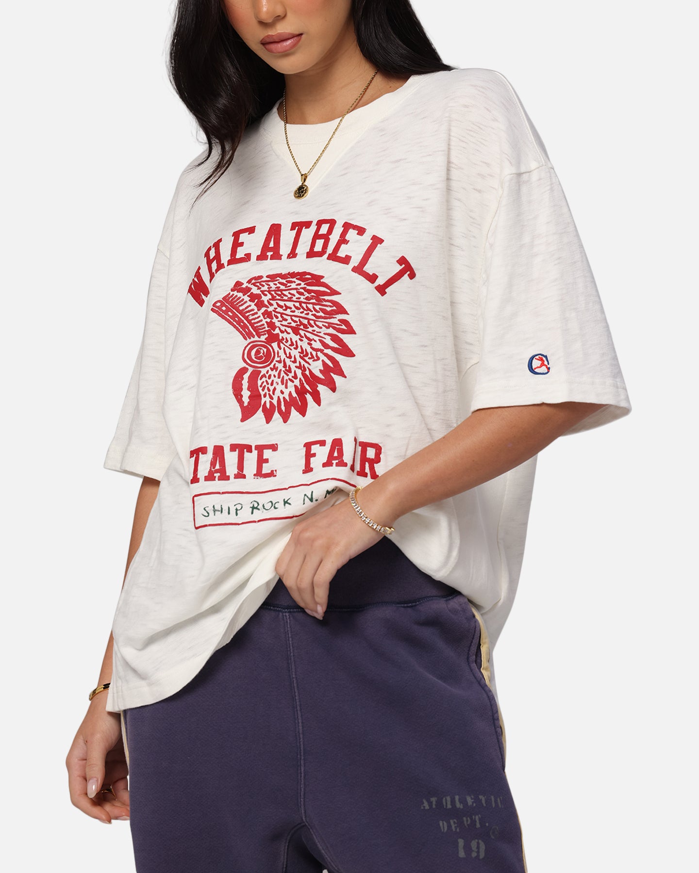 This new release from Champion's Archives collection is a tribute to the iconic campus wear of the '40s and '50s, and a nod to Champion's legendary history. Reimagined classic pieces straight from the archives – think sun-faded heavy knits and that perfect, worn-in feel. It’s all about blending Champion’s legacy of innovation and craftsmanship with a fresh, modern edge. Cop the pieces today at Culture Kings.- Printed graphics- Dropped shoulders- Ribbed crewneck- Twin-needle stitching- Short sleeves- Relaxed fit- Material: 100% Cotton- Colour: White- Style: ATN4A1