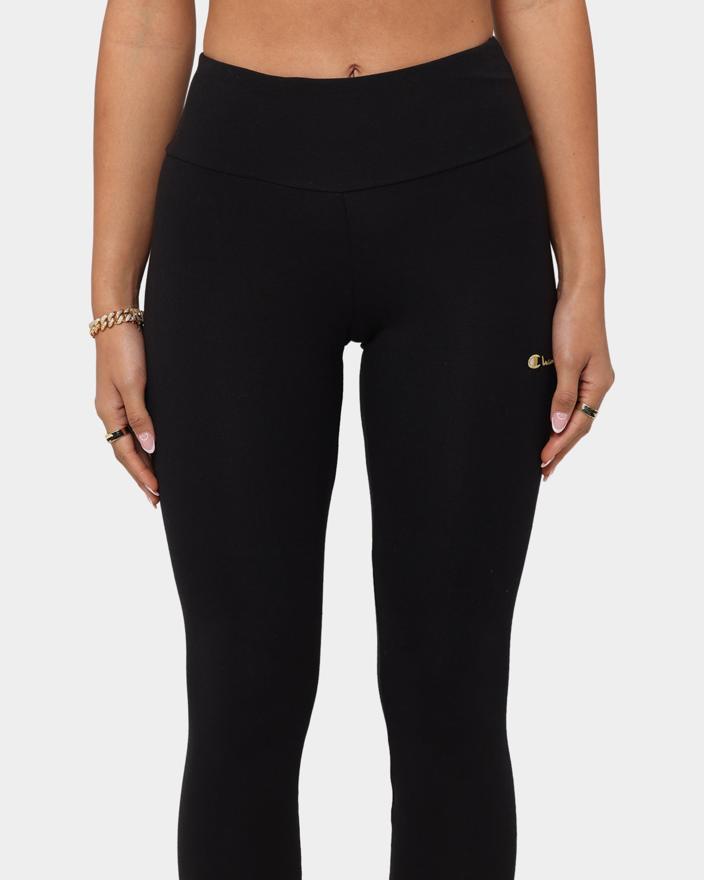 Soft and supportive, the Women's High Rise Leggings from Champion can be seen here in a look that's world-exclusive to Culture Kings. The stretch waistband will keep you secure throughout your workout. - World-exclusive colourway - Stretch waistband- High Rise - Embroidered Champion logo - Colour: Black/Gold - Composition: Cotton/Elastane - Style: CTQWN