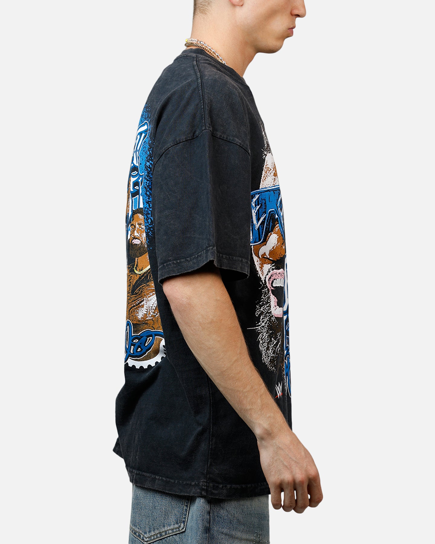 We've teamed up with WWE to celebrate the GOATs of wrestling with this epic release. This tee features striking printed graphics and twin-needle stitching for extra durability. Finished off on a premium cotton to take whatever you throw at it, these are the tough tees to cop. Limited stock available, secure yours today at Culture Kings.- Official merchandise- Printed graphics- Twin-needle stitching- Ribbed crewneck- Dropped shoulders- Short sleeves- Regular fit- Material: 100% Cotton- Colour: Black Acidwash- Style: CKJYUSOVT