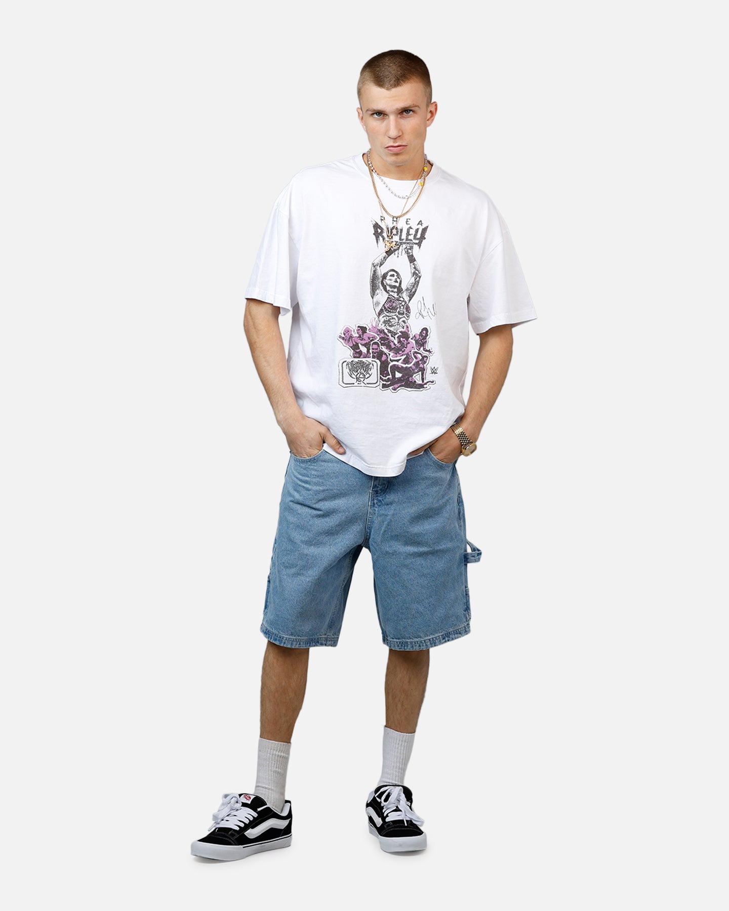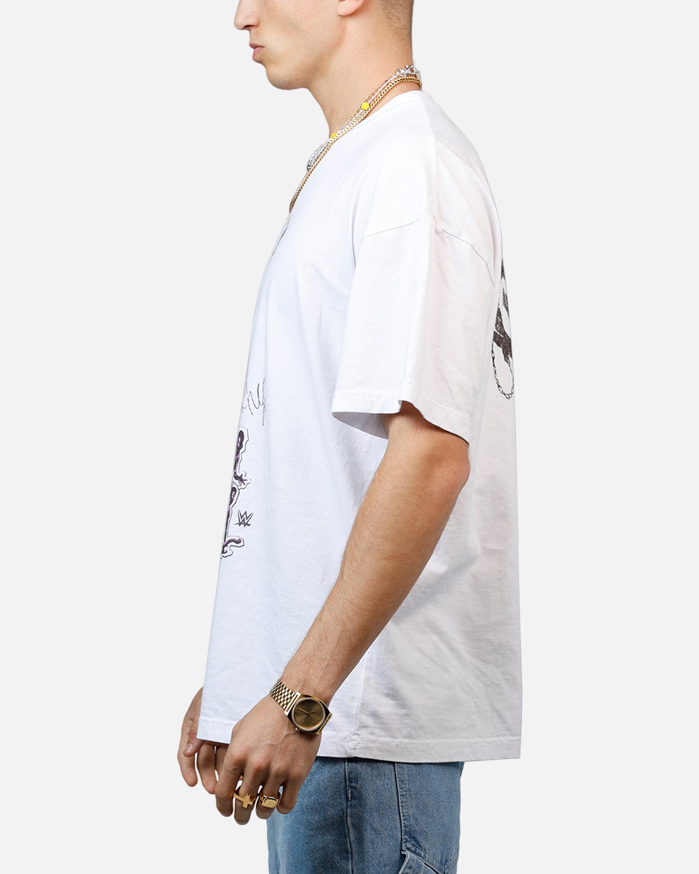 We've teamed up with WWE to celebrate the GOATs of wrestling with this epic release. This tee features striking printed graphics and twin-needle stitching for extra durability. Finished off on a premium cotton to take whatever you throw at it, these are the tough tees to cop. Limited stock available, secure yours today at Culture Kings.- Official merchandise- Printed graphics- Twin-needle stitching- Ribbed crewneck- Dropped shoulders- Short sleeves- Regular fit- Material: 100% Cotton- Colour: White- Style: CKRHRPLYWM41T