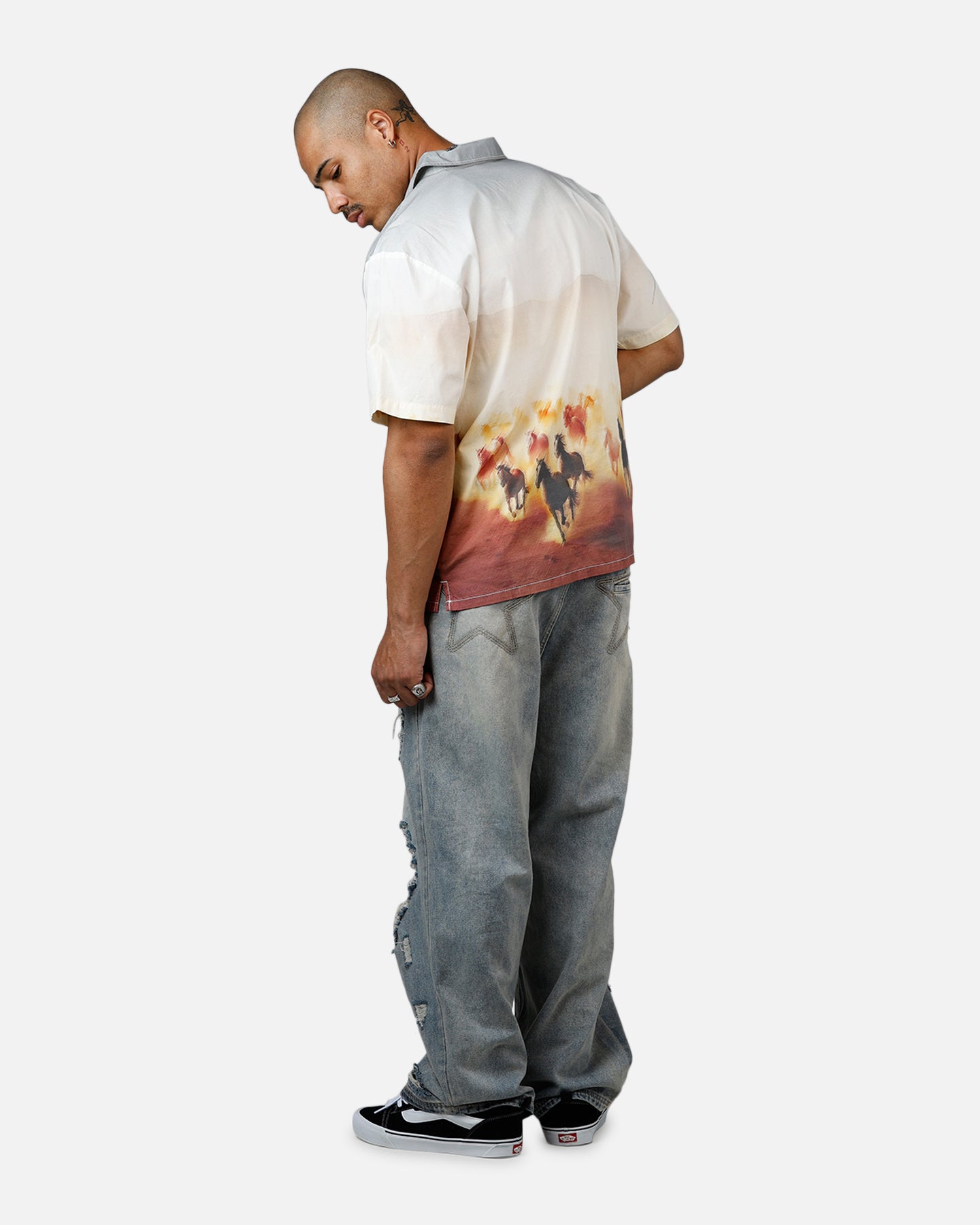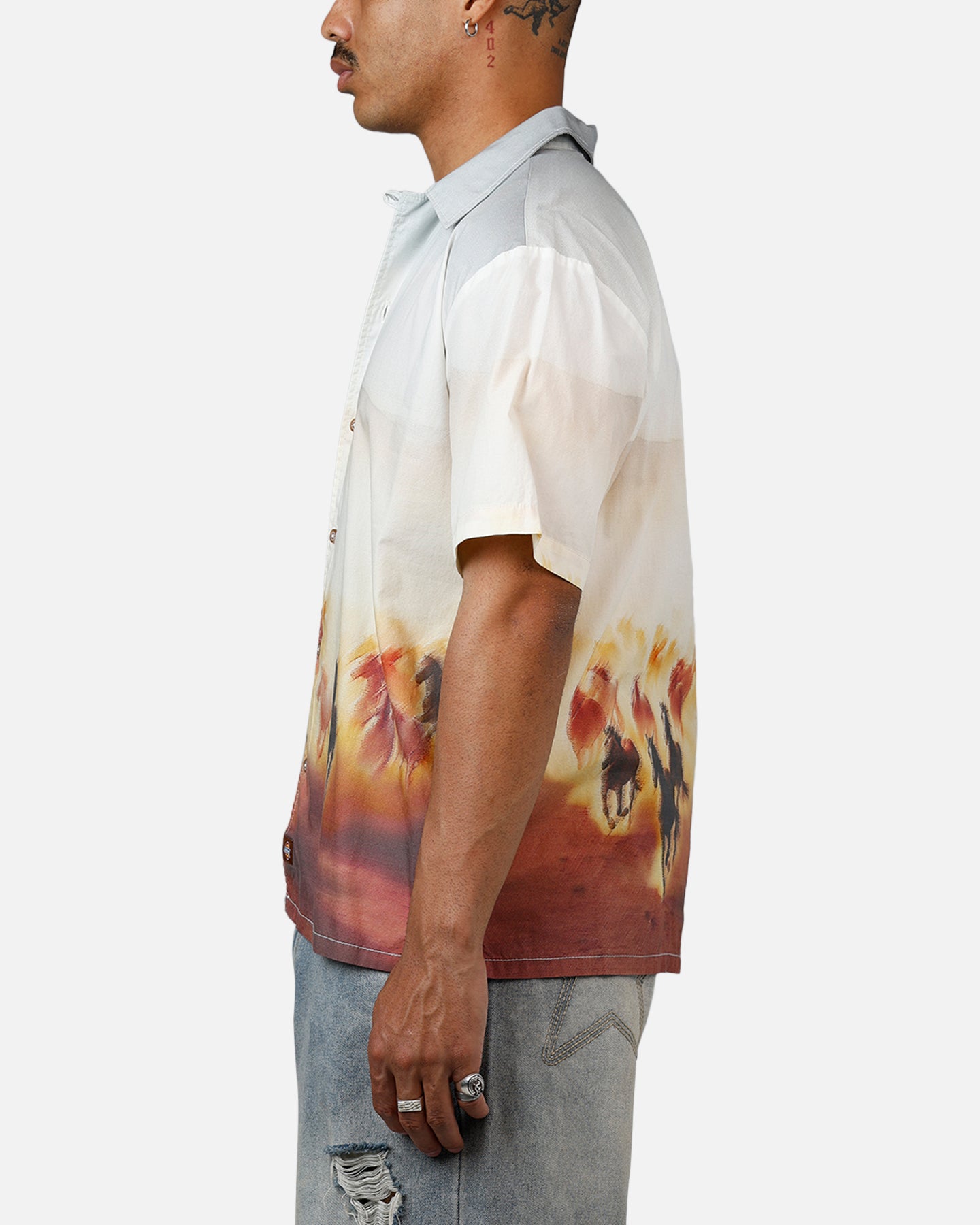 The Running Wild Shirt is one of the most recognizable workwear-inspired staples. The timeless shirt is crafted with printed graphics and woven brand label on the chest pocket. The button-up closure makes this the perfect layering piece for days and nights. Cop yours today at Culture Kings.- Printed graphics- Dual chest pockets- Button up closure- Woven brand label- Collar- Short sleeves- Colour: Multi- Style: A8676K41
