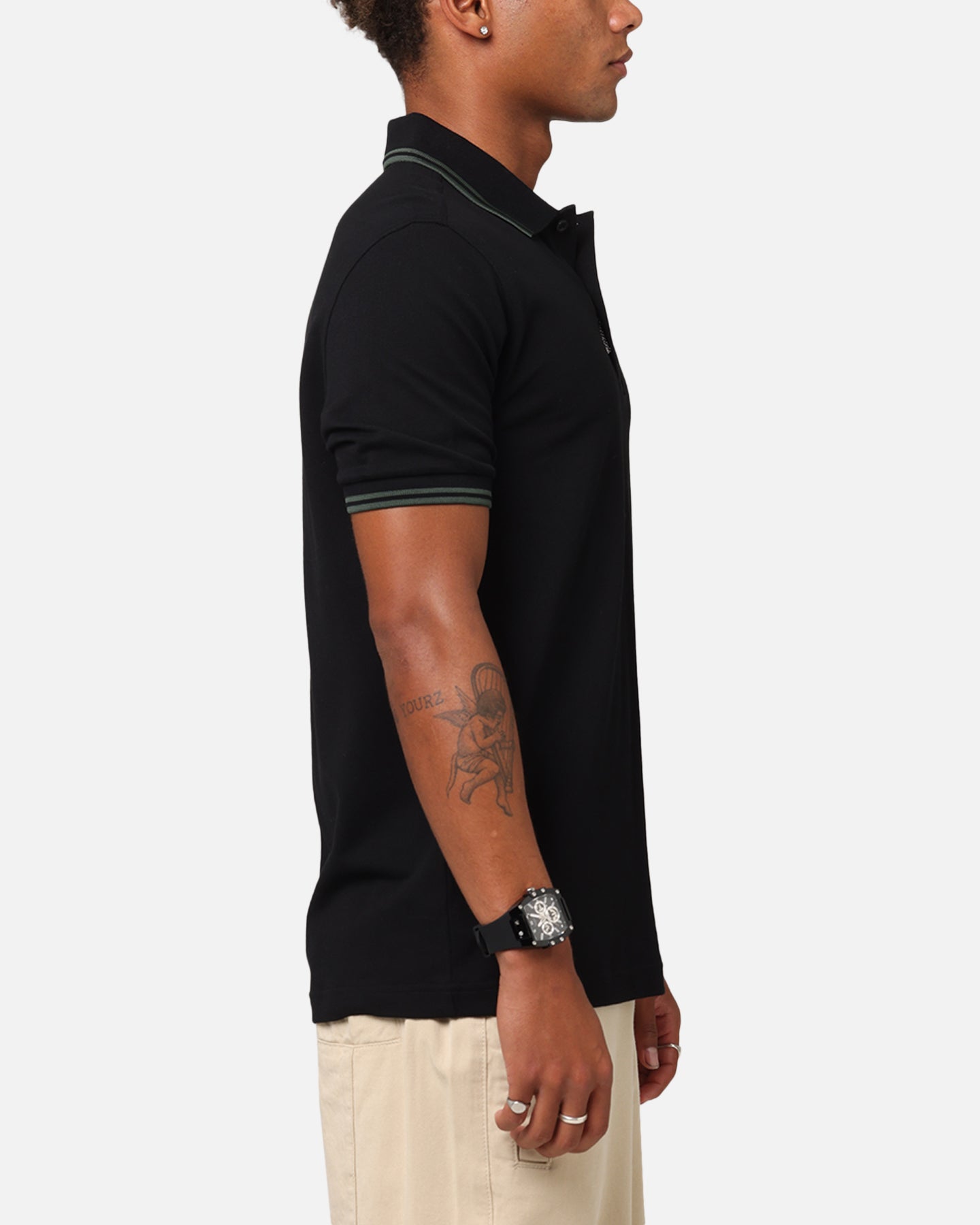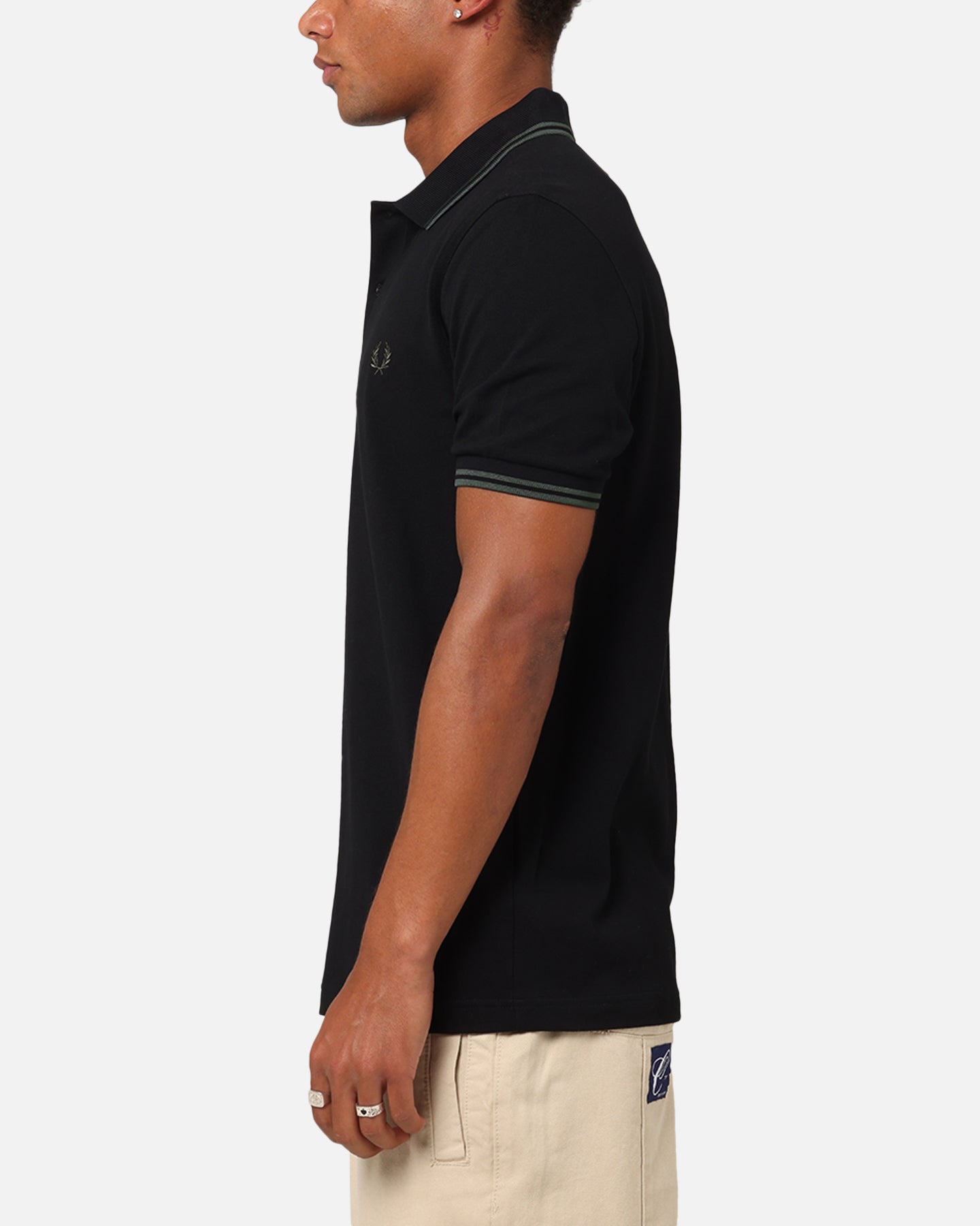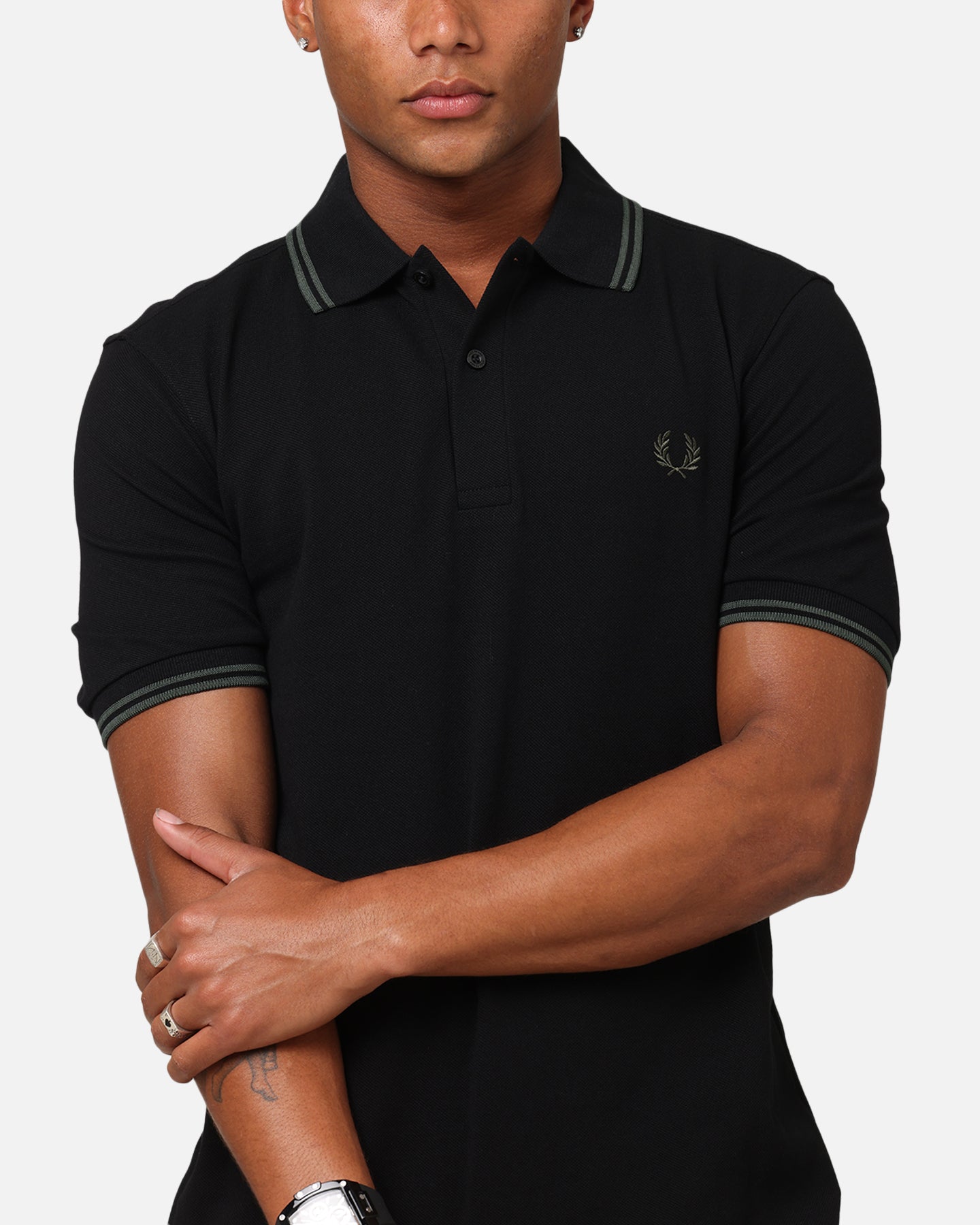 The Twin Tipped Polo Shirt was made to luxe up your wardrobe. This polo offers minimalistic, embroidered Fred Perry branding on an ultra comfortable cotton piqué construction with ribbed cuffs for a snug fit. Get your hands on it today at Culture Kings.- Embroidered Fred Perry logo at chest- Collared- 1/4 button close- Contrast trims- Ribbed cuffs- Short sleeves- Regular fit- Material: 100% Cotton- Colour: Black/Green- Style: M3600-Y43