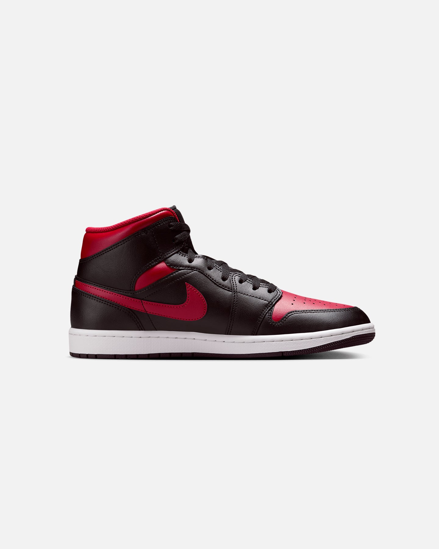 Inspired by the original AJ1, this mid-top edition maintains the iconic look you love while choice colours and crisp leather give it a distinct identity. Be quick and secure a pair of these legendary sneakers at Culture Kings today.- Leather, synthetic leather and textile upper- Foam midsole- Nike Air cushioning- Rubber outsole- Mid-cut silhouette- Padded collar- Perforated toe- Colour: Black/Varisty Red-Summit White- Style: DQ8426-067