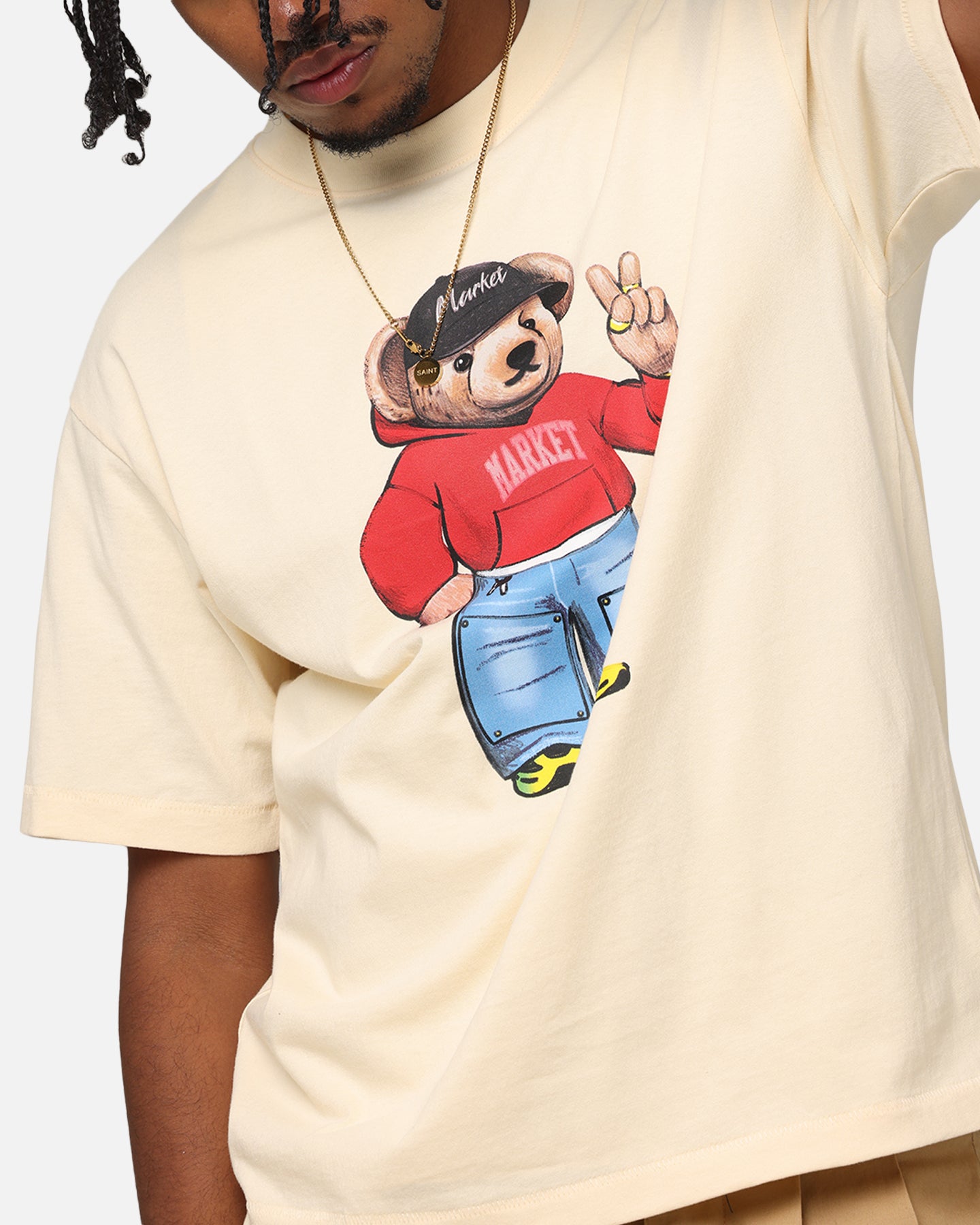Elevate your 'fits with the Fit Check Bear T-Shirt by Market. This tee has a super soft cotton construction and printed graphics repping your fave brand. The ribbed crewneck and dropped shoulders come together to give you a super flattering, streetwear fit. Grab it today at Culture Kings.- Printed graphics- Twin-needle stitching- Ribbed crewneck- Dropped shoulders- Short sleeves- Regular fit- Material: 100% Cotton- Colour: Cream- Style: 399002171-CREAM