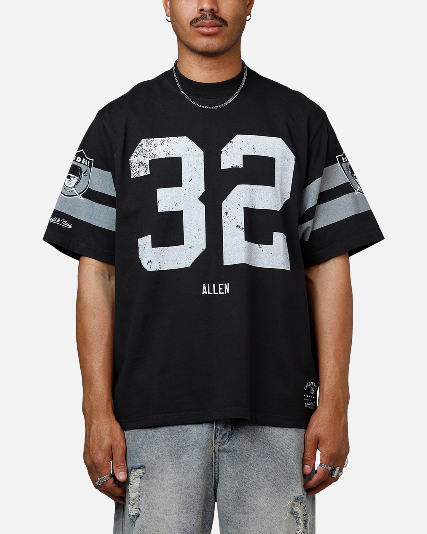 You can't go wrong with a tee from Mitchell & Ness. This tee features printed graphics showing off your team spirit, twin-needle stitching so you know it'll last for many game days to come and a super comfortable cotton construction. Grab yours today at Culture Kings.- Official merchandise- Printed graphics- Dropped shoulders- Ribbed crewneck- Twin needle stitching- Short sleeves- Box fit- Material: 100% Cotton- Colour: Faded Black- Style: MNBJA3051