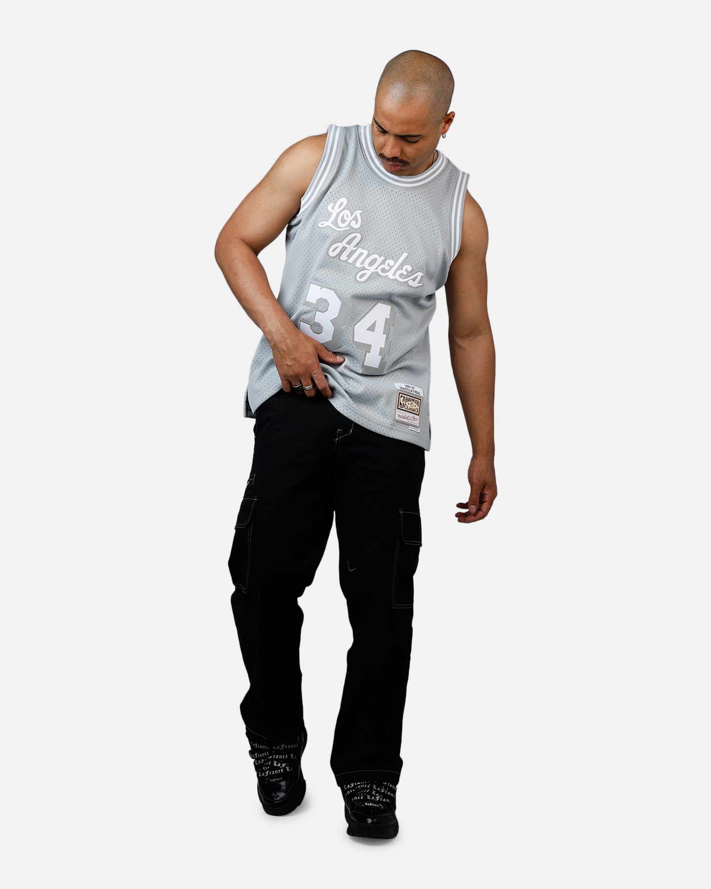 For all the ballers. The Los Angeles Lakers Shaquille O'Neal 1996-1997 Swingman Jersey is made with breathable polyester mesh with side vents to keep you cool. It's lined with anti-irritation ribbed trim at neckline and armholes for added comfort. Finished with player and team graphics and the NBA patch on the left shoulder for an on-court look. Cop yours today at Culture Kings.- Official merchandise- Mesh construction- Heat-applied screen printed twill graphics- Woven jock tag- Ribbed neck and armholes- Material: 100% Polyester- Colour: Grey- Style: MNLL12566