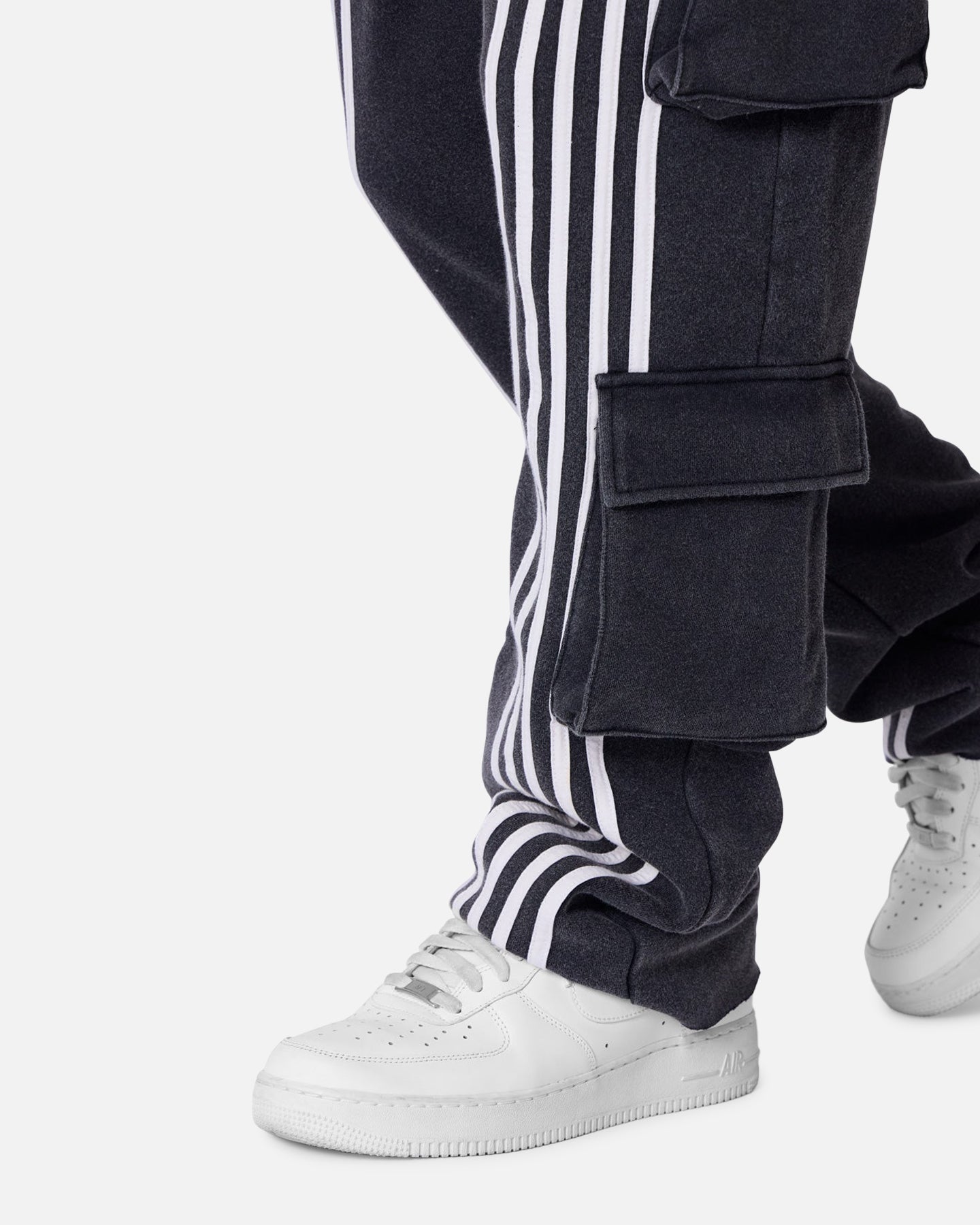 Elevate your casual fits' with the Front Stripe Sweatpants by MNML. These pants are designed with a relaxed fit throughout with cargo pockets at the outseam, welt pockets at the hip, internal drawcord, contrasting taping stripe details down the front, and finishing off with a garment wash. Cop yours today at Culture Kings.- Elasticated waistband- Adjustable drawstring- Vintage wash- Cargo pockets- Contrast stripe detailing- Relaxed fit- Material: 100% Cotton- Colour: Washed Black- Style: M2024-W219-WBK