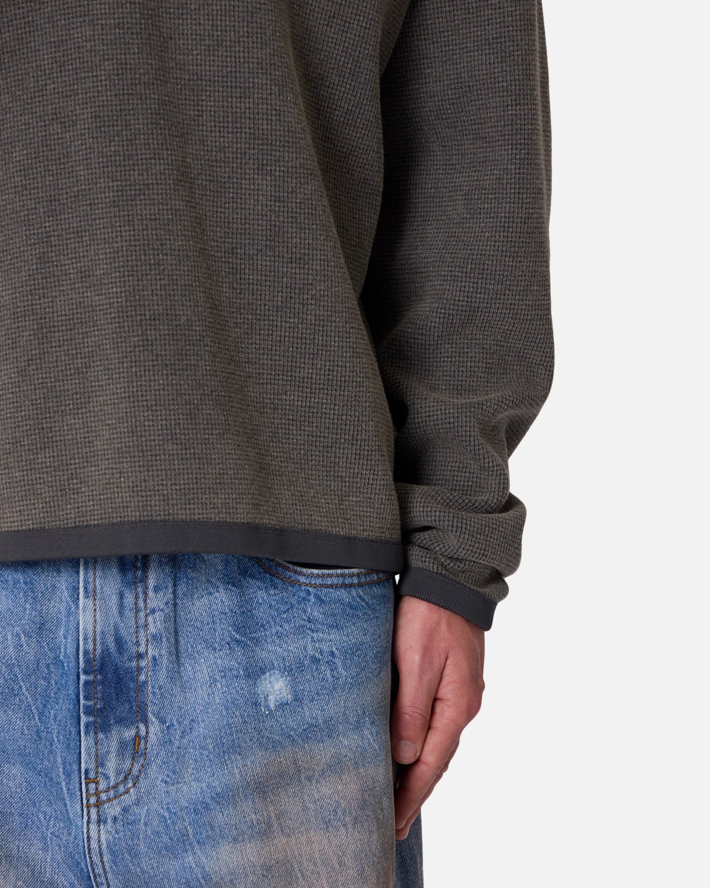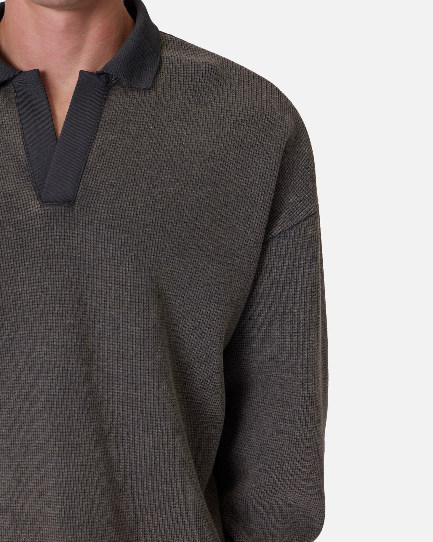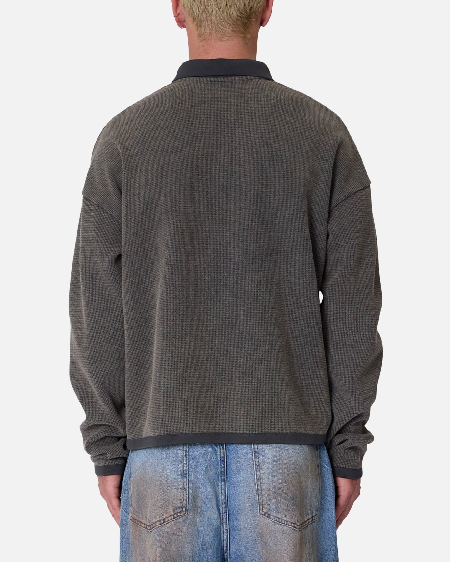 Cozy up with a fresh look with the Polo Thermal Long Sleeve T-Shirt by MNML. This tee is made from premium cotton with a vintage wash and features a drop shoulder construction, contrast ribbed trims and waffle knit construction for a soft feel for all day comfort. Cop yours today at Culture Kings.- Waffle knit construction- Contrast ribbed trims- Dropped shoulders- Contrast v-neck collar- Relaxed fit- Material: 100% Cotton- Colour: Charcoal Grey- Style: M2024-F223-CGY