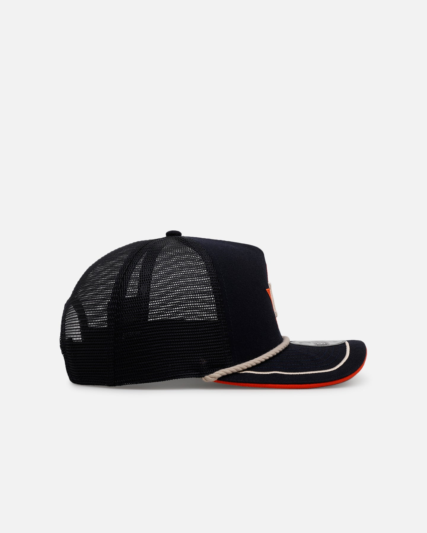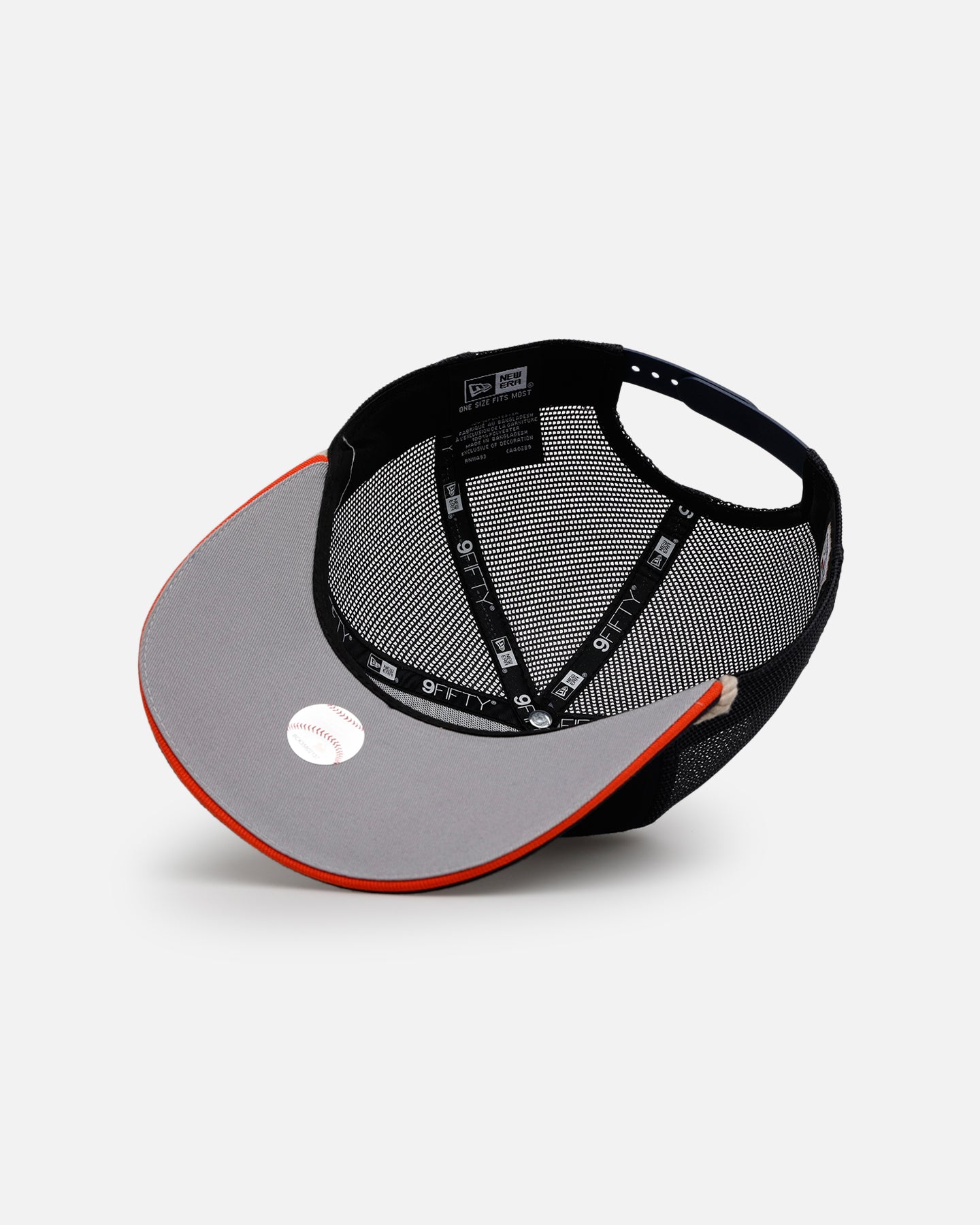 The 9FIFTY® A-Frame features a snapback closure and full curved visor for a casual, ready-to-wear fit. This style merges the front two crown panels into one, creating a vintage look and shape.- 9FIFTY® A-Frame- Adjustable Snapback Closure- Embroidered Official Team Logos- 5-Panel Structured Silhouette- High Profile Pinched Crown- Pre-Curved Visor- Back mesh panels- Colour: Navy- Style: 60641316