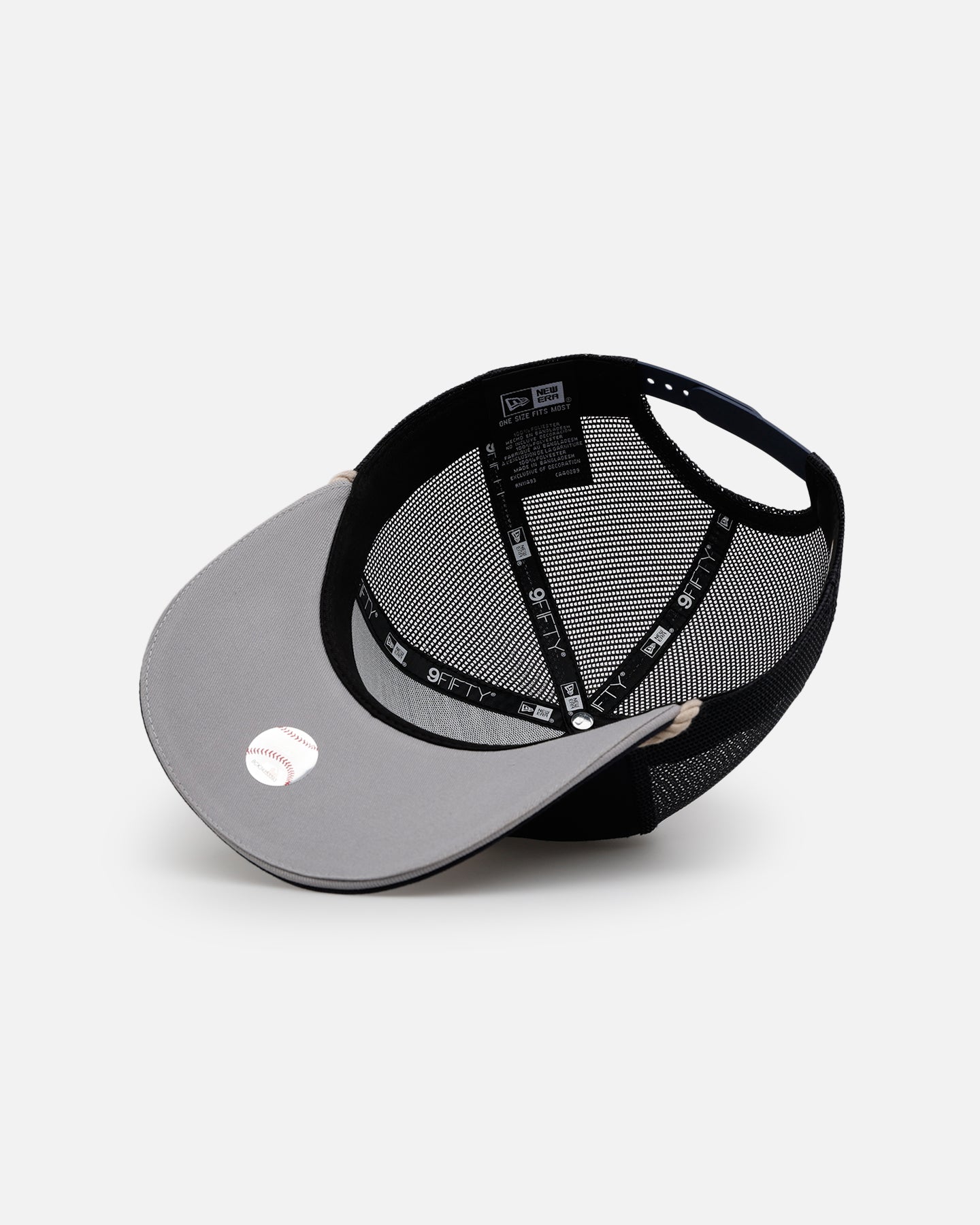 The 9FIFTY® A-Frame features a snapback closure and full curved visor for a casual, ready-to-wear fit. This style merges the front two crown panels into one, creating a vintage look and shape.- 9FIFTY® A-Frame- Adjustable Snapback Closure- Embroidered Official Team Logos- 5-Panel Structured Silhouette- High Profile Pinched Crown- Pre-Curved Visor- Back mesh panels- Colour: Navy- Style: 60641308