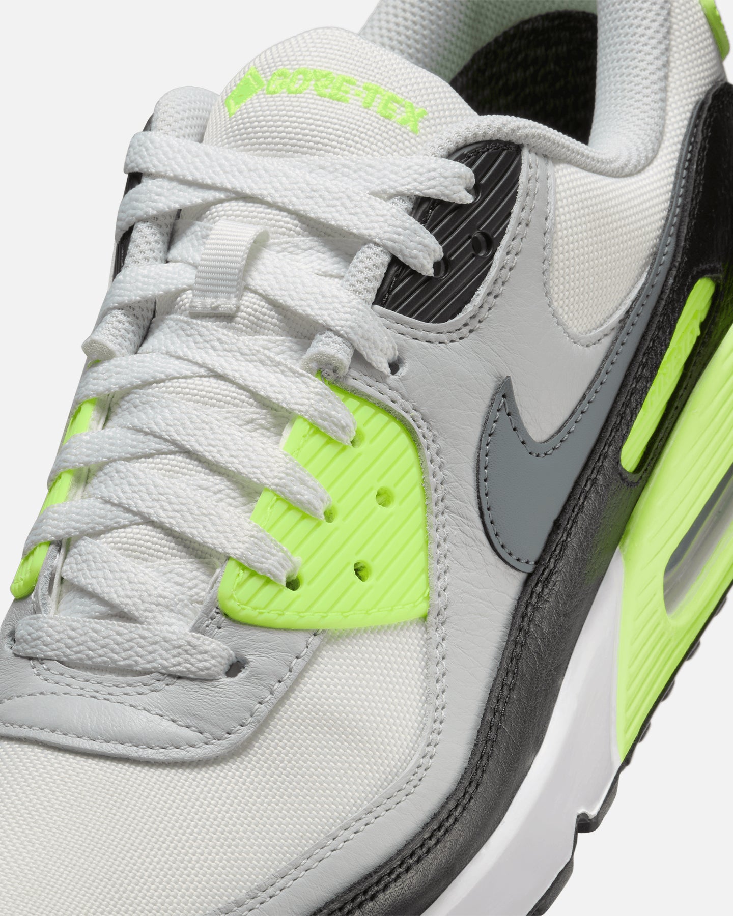 Lace up and feel the legacy. These AM90s will keep up with you on all your adventures thanks to a mix of GORE-TEX and mesh materials. Worn by presidents, revolutionized through collabs and celebrated through rare colorways, the Waffle sole, striking visuals and Nike Air cushioning keep it alive and well. Cop yours today at Culture Kings.- Textile upper with leather and synthetic overlays- Nike Air cushioning- Low-cut silhouette- Padded collar- Rubber Waffle outsole- Low-cut silhouette- Colour: Summit White/Cool Grey-Volt- Style: FD5810-102