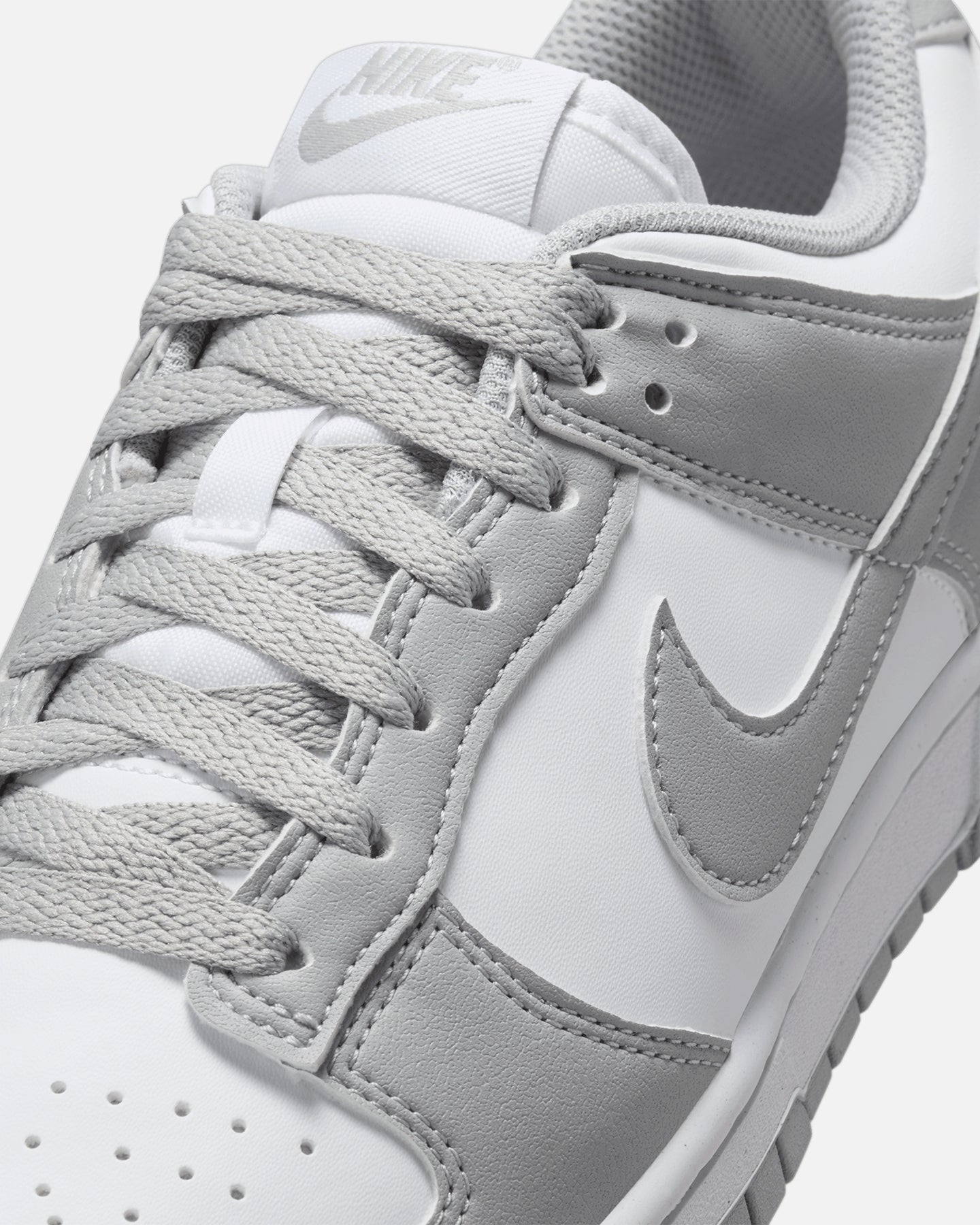 You can always count on a classic. The Dunk Low pairs its iconic color blocking with premium materials and plush padding for game-changing comfort that lasts. The styling possibilities are endless—how will you wear your Dunks? Cop yours today at Culture Kings.- Leather upper- Foam midsole- Rubber outsole- Low-cut silhouette- Padded collar- Foam insole- Perforated toe- Colour: White/Smoke Grey- Style: DD1873-113
