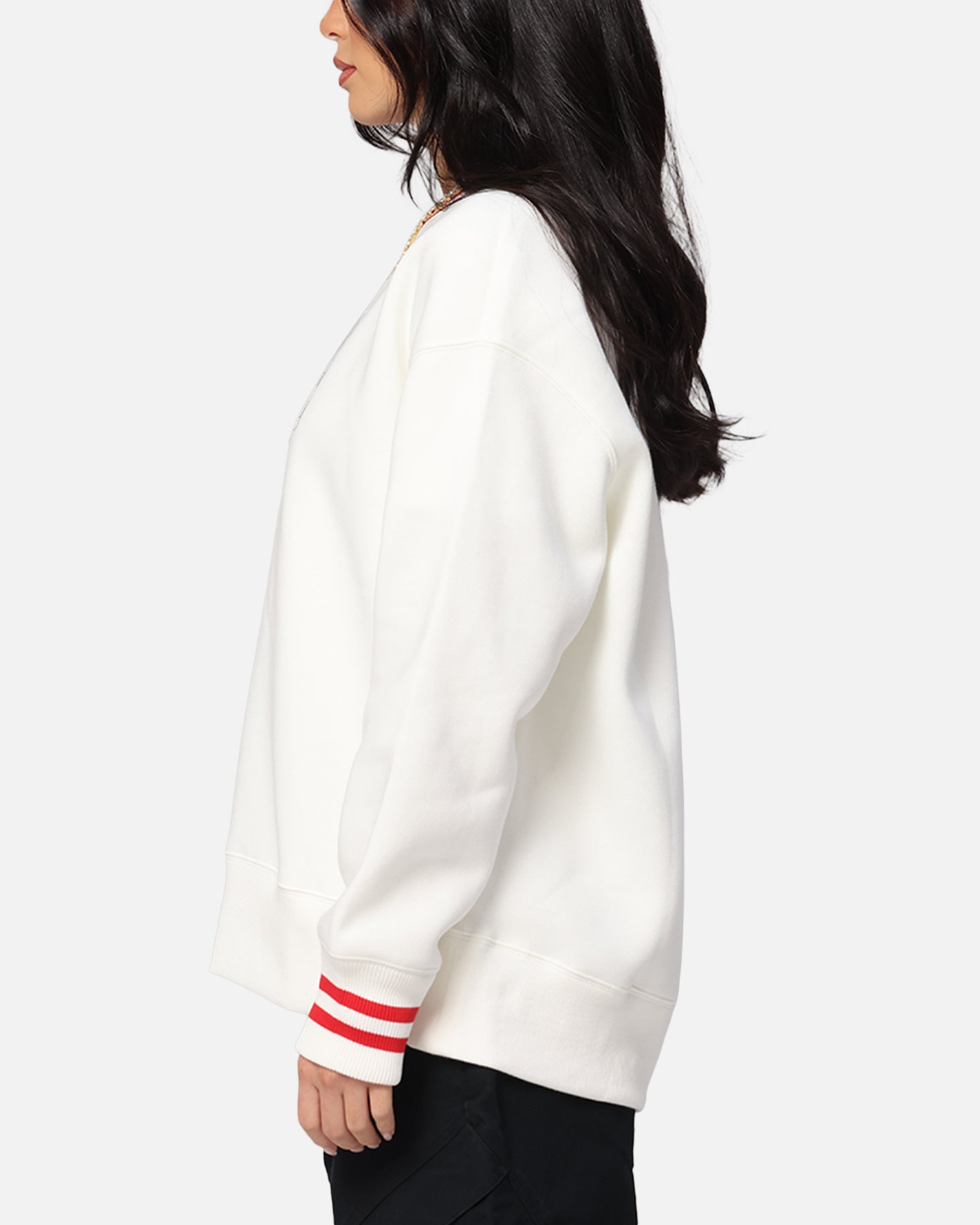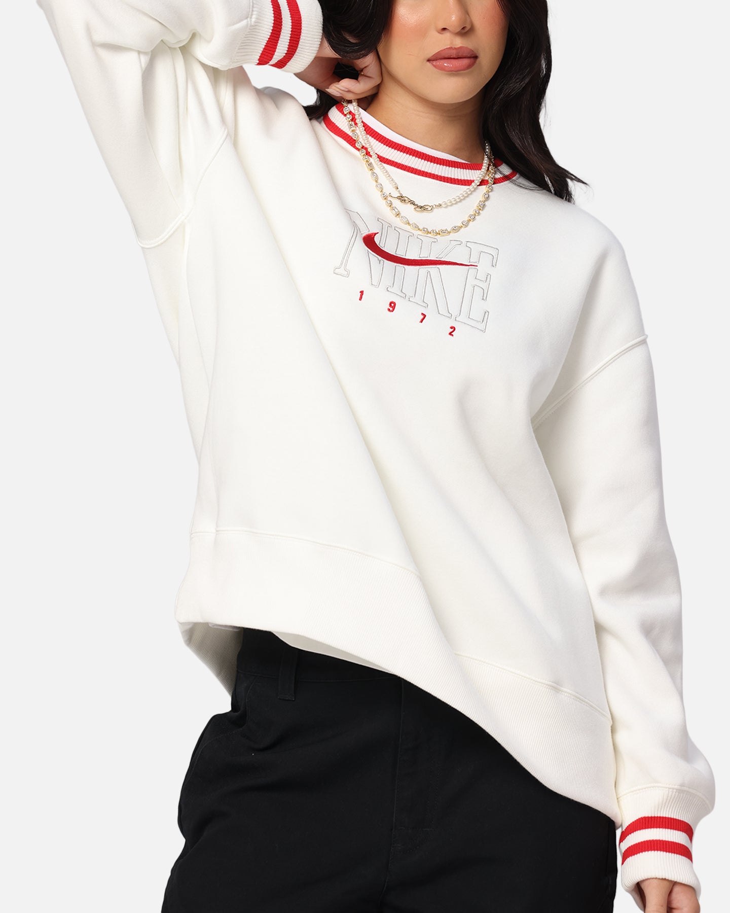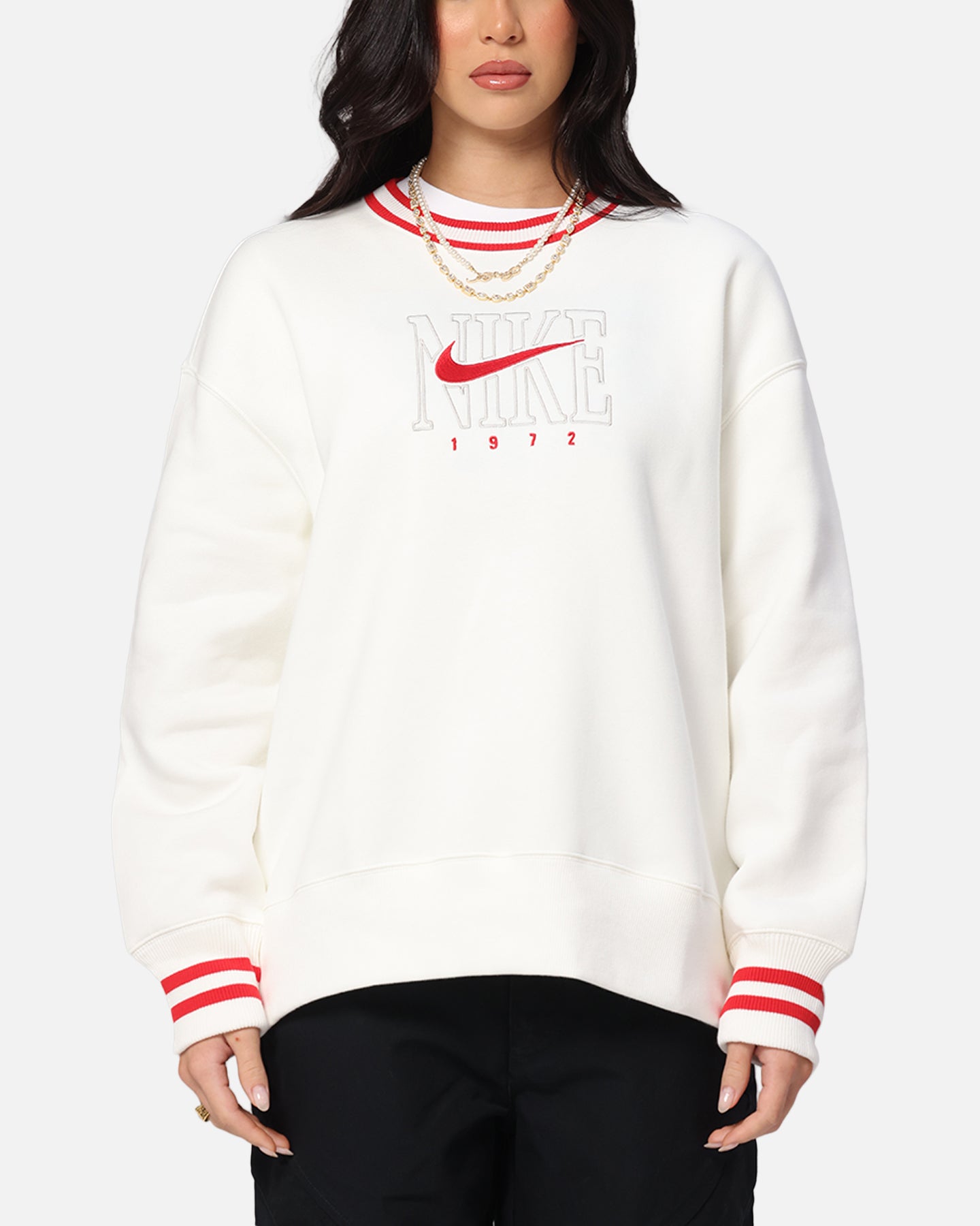 Past meets present in this crew-neck sweatshirt featuring an important year in Nike's history. Exaggerated ribbing emphasizes the oversized fit. Midweight fleece feels soft on the inside and smooth on the outside. Cop yours today at Culture Kings.- Embroidered graphics- Ribbed trims- Dropped shoulders- Midweight fleece- Oversized fit- Material: - 80% cotton/20% polyester- Rib: 97% cotton/3% spandex- Colour: Sail- Style: HJ0949-133