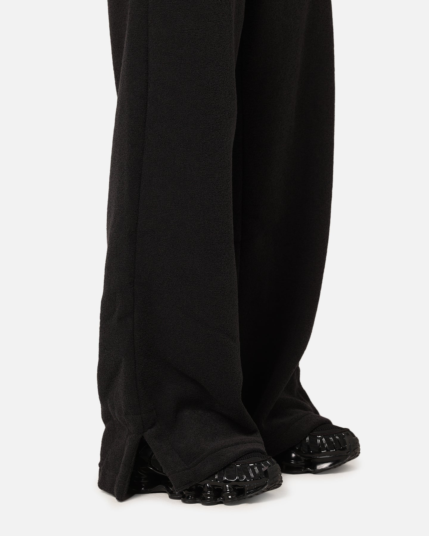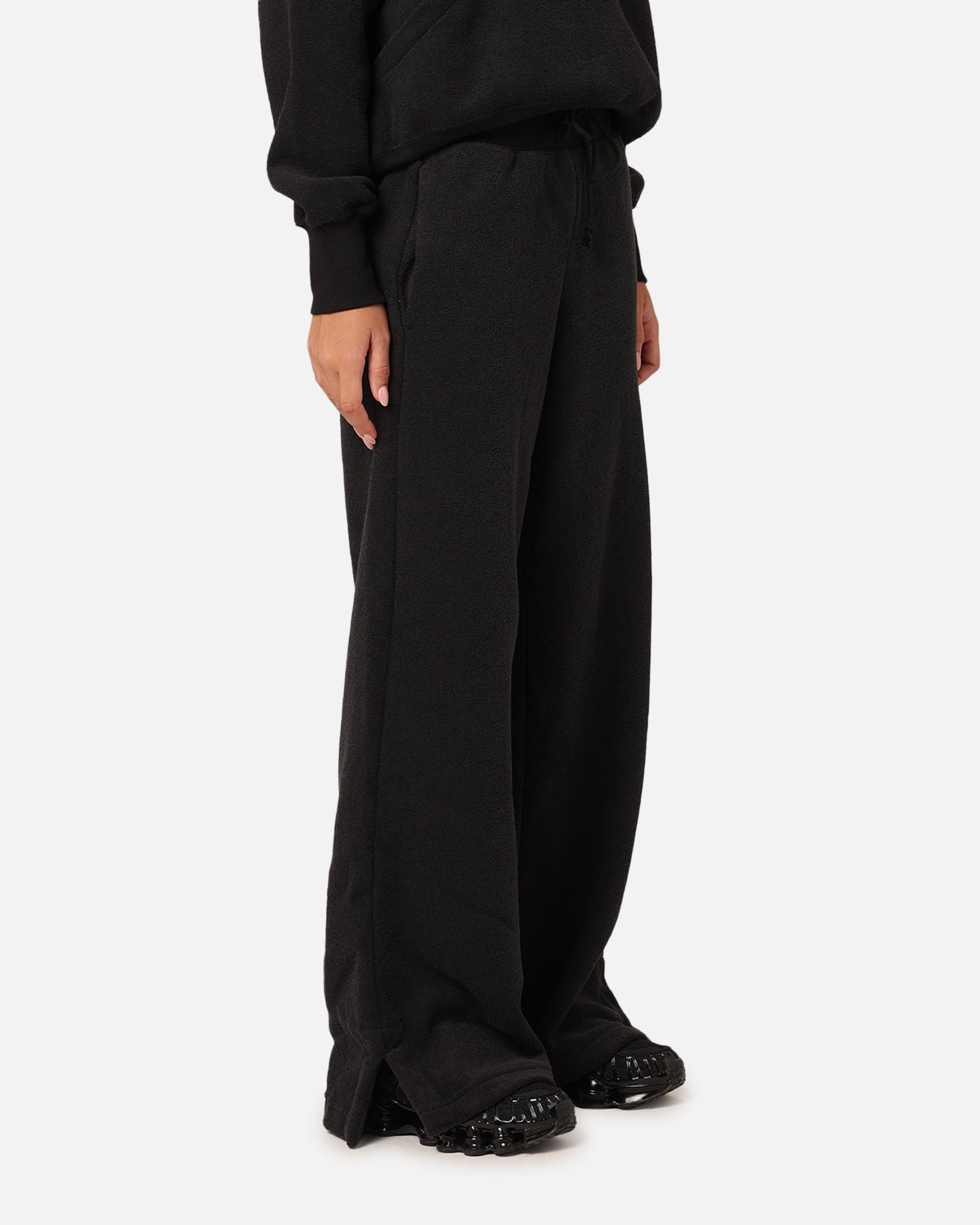 Grounded in style, comfort and versatility, meet our take on luxury loungewear. Textured fleece makes these high-waisted pants cosy enough to wear around the house yet elevated enough to wear out in the city. Meanwhile, extra room throughout the legs lets you relax to the max.- Mid-weight fleece- Embroidered logo- Tall, ribbed elastic waistband- Adjustable drawstring- Split hems- Dual side pockets- Baggy leg- Material: 73% Polyester/27% Rayon- Colour: Black/Sail- Style: FN3622-010