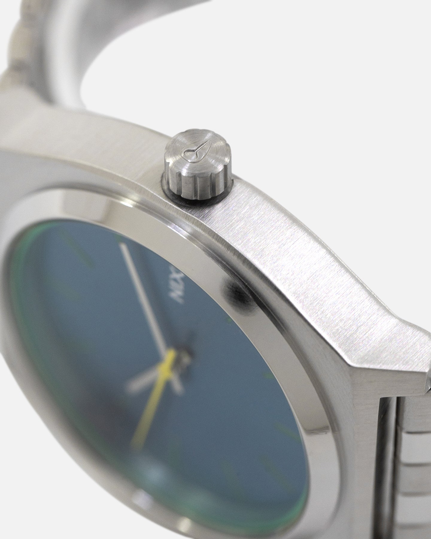 Fuelled by adventures far and wide and often sometimes by those that happen just down the street, Nixon delivers products that meet your needs in various high-stress work and play environments. It is through their dedicated team’s perspectives that Nixon contributes to a single unified expression: team-designed, custom-built accessories for a life well-lived.- Stainless steel band- Hardened mineral crystal glass- Moulded hands on the dial- Miyota Japanese quartz movement- 19.5-18 mm woven textile band- Colour: Silver/Blue- Style: A045-5302-00