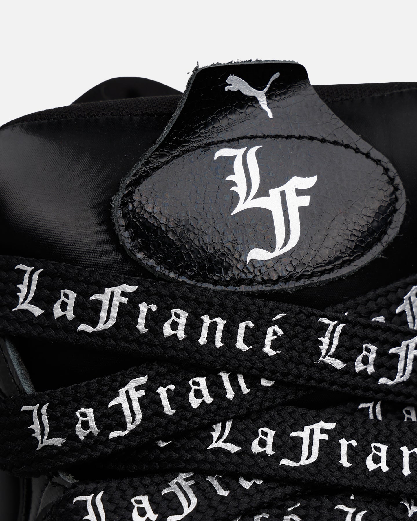 Bring LaMelo Ball’s elevated style to your sneaker collection with the PUMA LaFrancé. Named after Melo’s lifestyle brand, this exaggerated, street-inspired silhouette draws inspiration from extreme Y2K aesthetics. This chromed out drop features hits of silver and a sleek, futuristic feel, with allover LaFrancé branding and shiny finishes. Cop yours today at Culture Kings.- Patent leather, suede upper- Plush thick foam- Lace-up closure- Fat laces- Fully wrapped around rubber cupsole- Melo-specific decals as raised bubbles- Padded collar- LaFrancé and PUMA branding details- Colour: Black- Style: 31133501