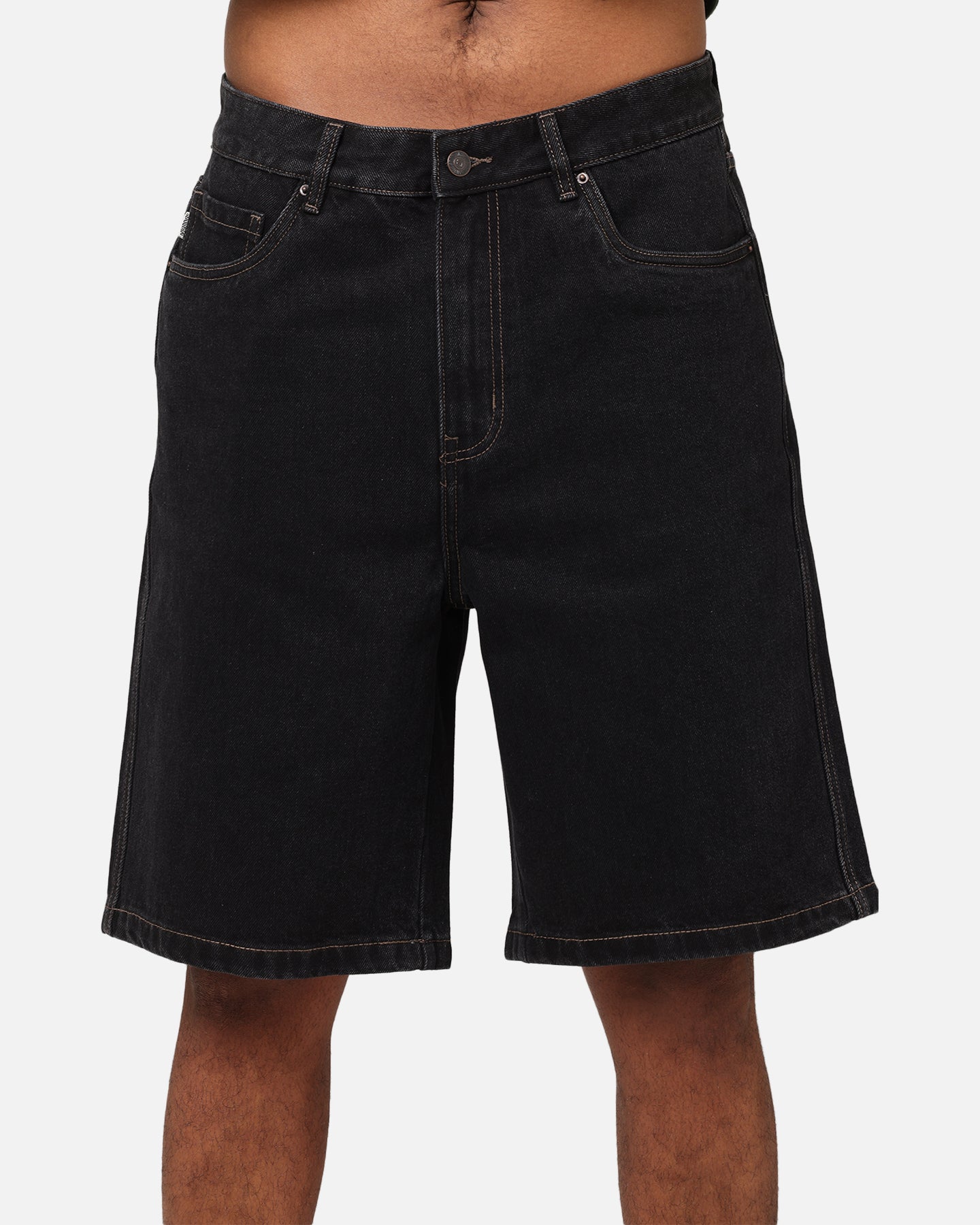 Take your everyday 'fits up a notch with the Denim Standard Shorts by S Double. These shorts feature a super rigid denim construction with a 5-pocket design for all your essentials and a woven brand label at the back to rep' your go-to brand. Cop yours today at Culture Kings.- Denim- Woven brand label- Twin needle stitching- Zip fly and button close- Belt loops- Contrast stitching- Five-pocket styling- Regular fit- Colour: Black Wash- Style: SD024S3600