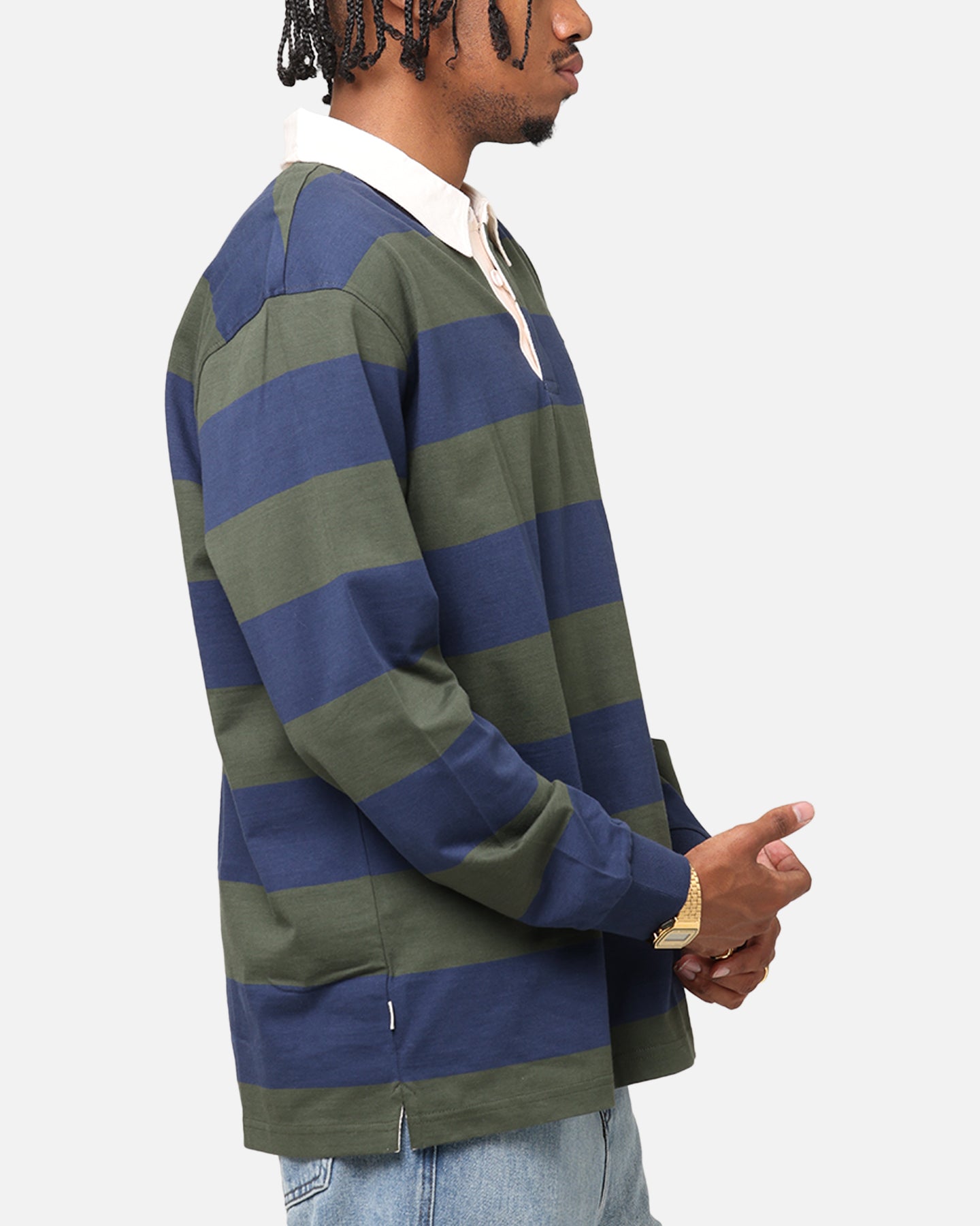 Elevate your casual wardrobe with the Rugby Jersey from S Double. Featuring a subtle embroidered logo with all-over contrast horizontal stripes and a crisp contrast collar, this rugby shirt blends classic polo styling with a modern edge. Crafted for both comfort and versatility, it's a timeless staple for effortless everyday wear. Cop yours today at Culture Kings.- Embroidered logo- Ribbed cuffs- Dropped shoulders- Contrast collar- All over contrast stripes- Twin needle stitching- Regular fit- Colour: Navy- Style: SD025W1100
