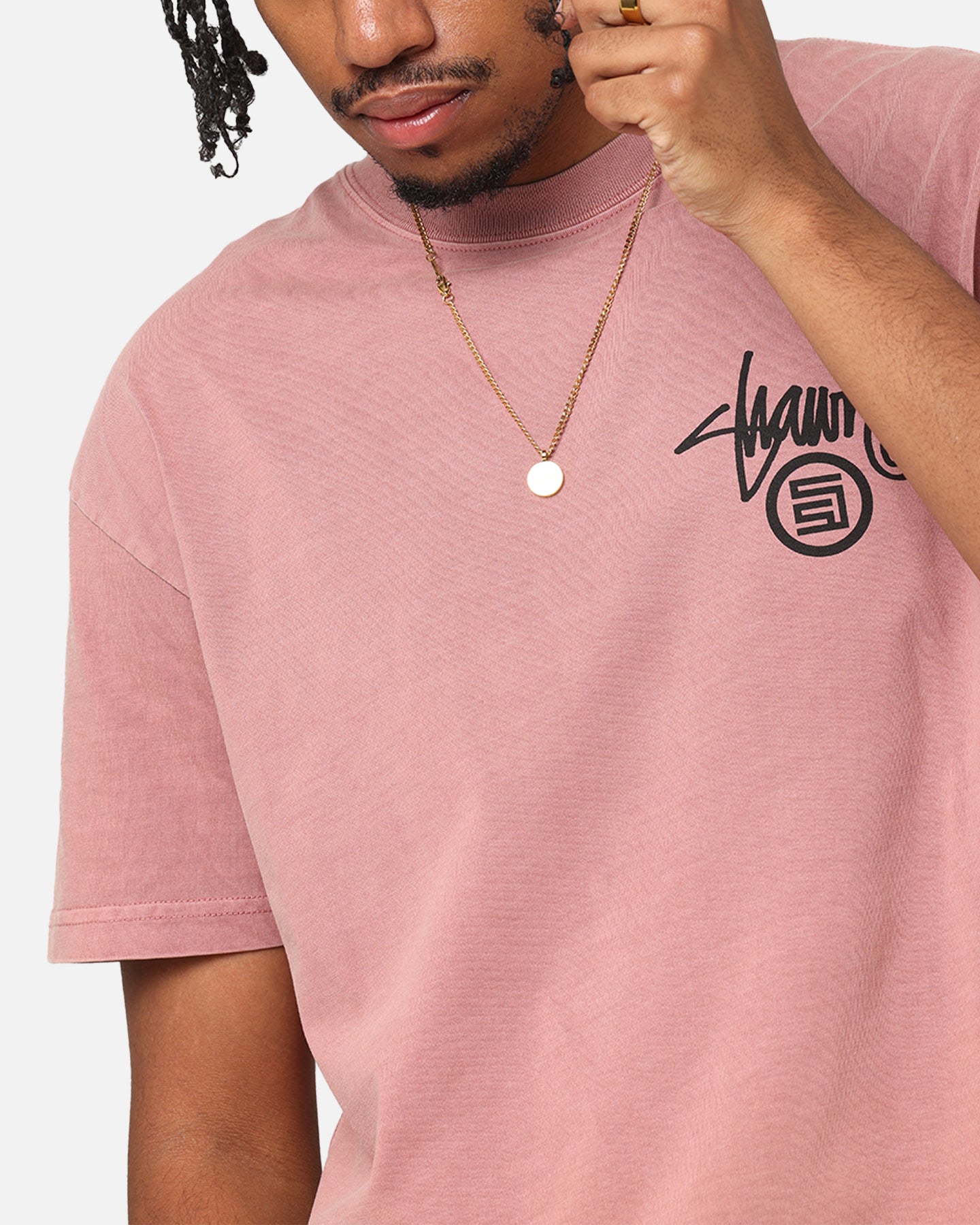 Elevate your streetwear game with this standout tee from S Double. This tee features epic printed graphics, dropped shoulders for a laidback look, and a ribbed crewneck for an ultra-comfortable fit. Grab yours today at Culture Kings.- Printed graphics- Dropped shoulders- Ribbed crewneck- Twin needle stitching- Short sleeves- Regular fit- Material: 100% Cotton- Colour: Rose- Style: SD024S3004