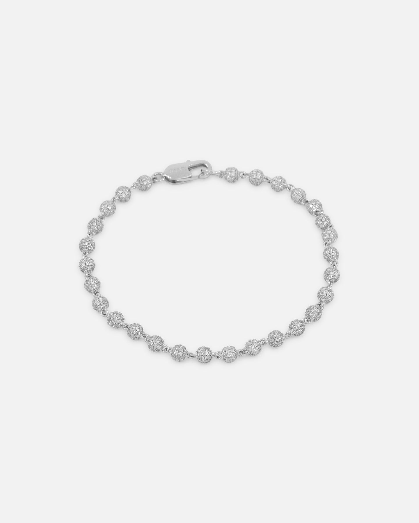 Simple is class, and the 4mm Iced Ball Bracelet from Saint Morta proves that. With a fine chain to a custom no-fuss clasp and 18k white gold plating, this chain makes an outfit with the details. Be sure to grab yours today.- 18k white gold plated- Stainless steel base- Iced ball-cut links- CZ stones- Engraved logo- Custom lobster clasp closure- Colour: White Gold- Style: SM4MMICBLLBR