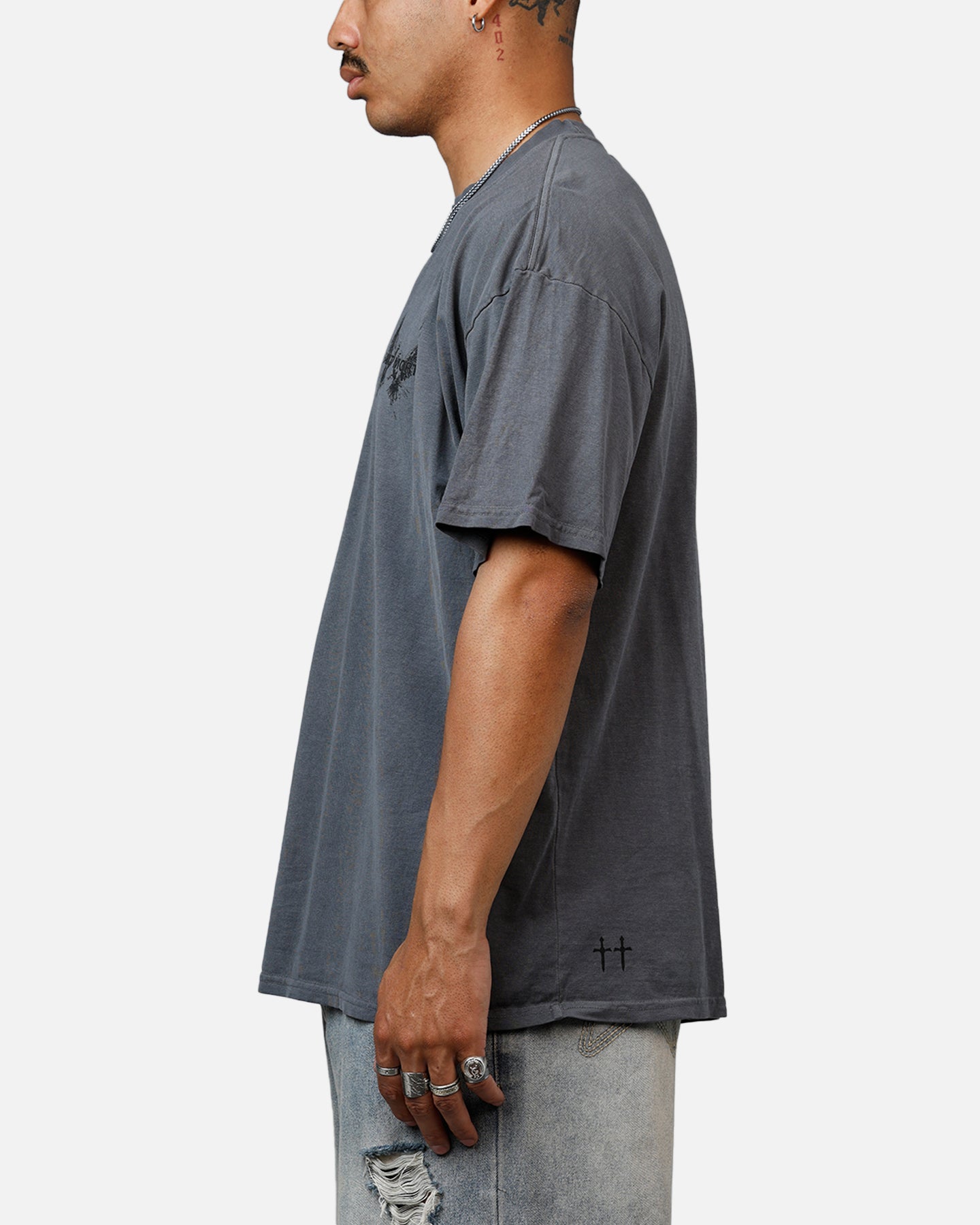 Elevate your everyday looks with this powerful Saint Morta tee. Printed graphics, dropped shoulders and twin-needle stitching makes this piece a wardrobe essential that you won't want to go a day without. Be sure to secure yours today while stock lasts.- Printed graphics- Dropped shoulders- Ribbed crewneck- Twin-needle stitching- Short sleeves- Material: 100% Cotton- Colour: Washed Charcoal- Style: SMVLKDVSHT