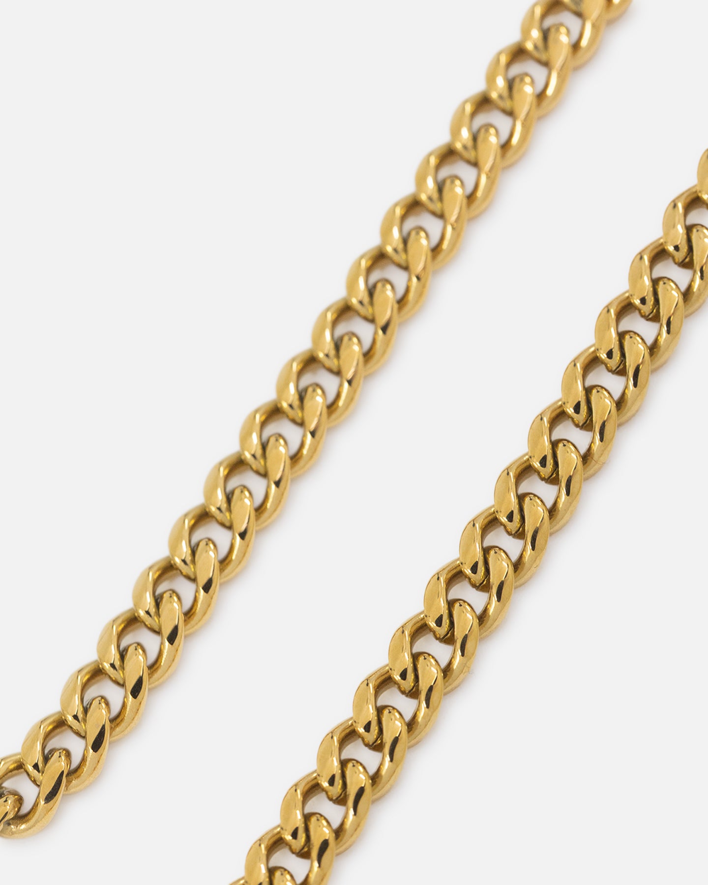 Bring a touch of luxe to your looks and finish off your 'fits with sleek accessories from Saint Morta. With a high-quality stainless steel base, these are the pieces of the season. Featuring an 18k gold plating designed to last and keep you looking fire. Get yours today at Culture Kings.- Cuban chain link- Stainless steel base- Lobster clasp closure- 18k gold plating- Engraved logo- Approx. chain length: 22'- Approx. combined weight: 35.2g- Width: 3mm- Colour: Gold- Style: SMMIAMCHBNCuban:The Cuban is a classic flat link chain that never goes out of season. With its loose and gracefully curved Cuban links, it elegantly complements both casual tees and layered ensembles. The smaller Cuban links, ranging from 2-3mm, pair seamlessly with your favourite pendants, while the larger 5mm and above links are perfect for bold, bulky pendants where minimal movement is desired. Crafted for exceptional strength and durability, this chain is a true staple in any collection.