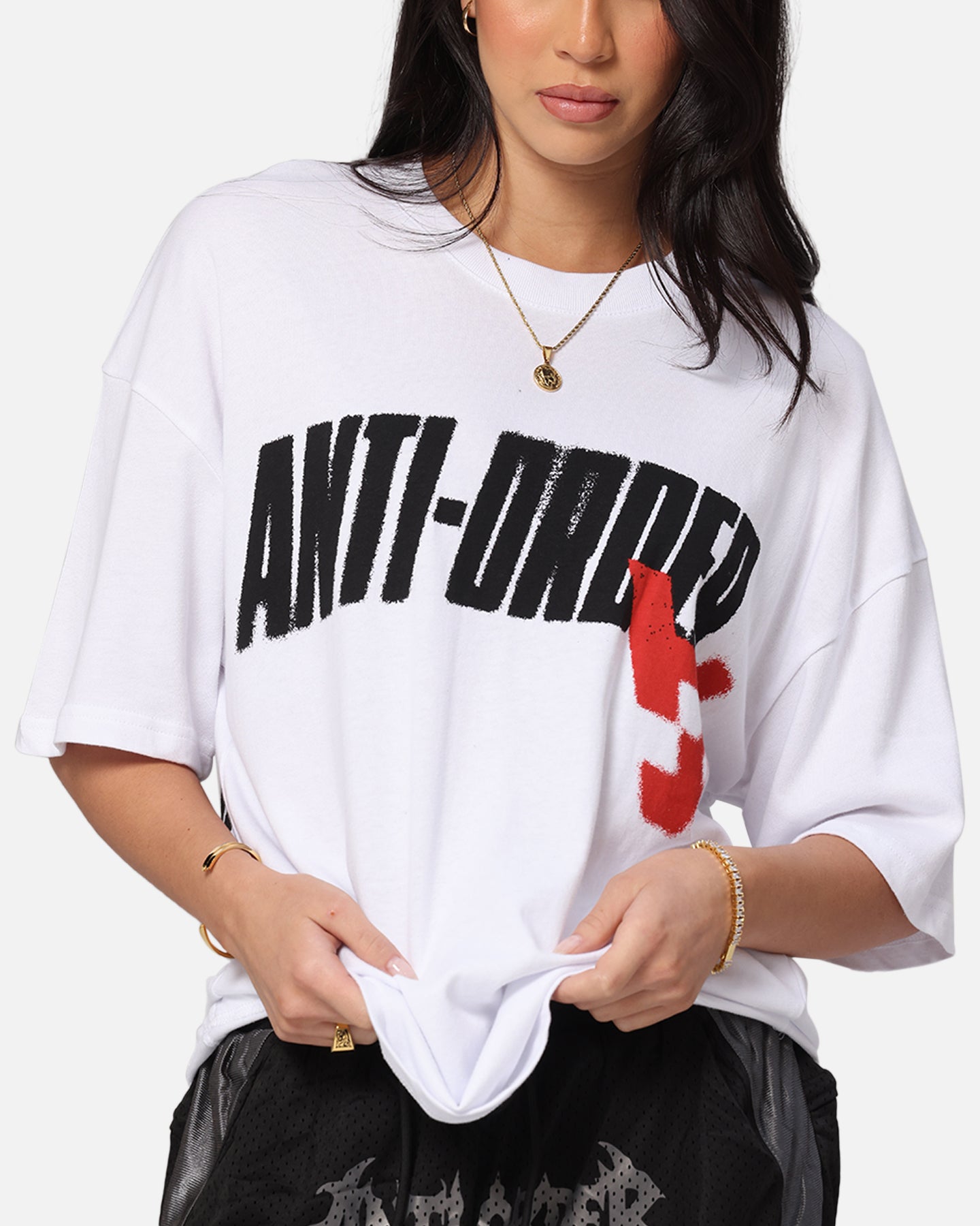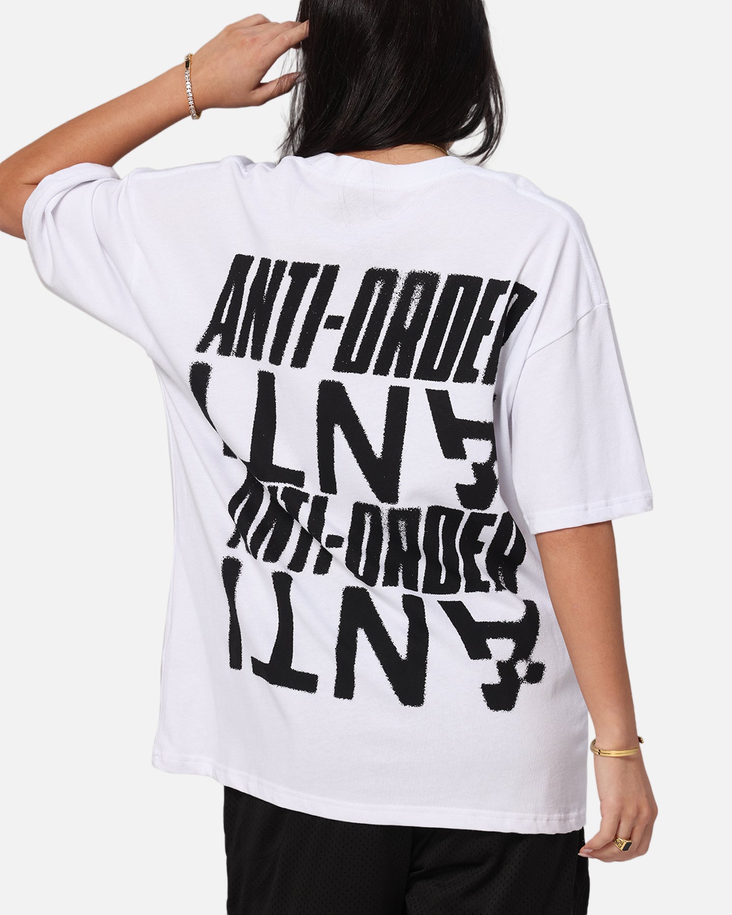 Casual redefined. The Anti Stacked Drop Shoulder T-Shirt is the perfect addition to your daily rotation, with custom-printed brand graphics on a premium cotton tee with dropped shoulders for an off-duty vibe. Get your hands on it today before it's too late.- Printed graphics- Dropped shoulders- Ribbed crewneck- Twin-needle stitching- Short sleeves- Side pip tag- Oversized fit- Material: 100% Cotton- Colour: White- Style: AOANTSTKDRSHSST