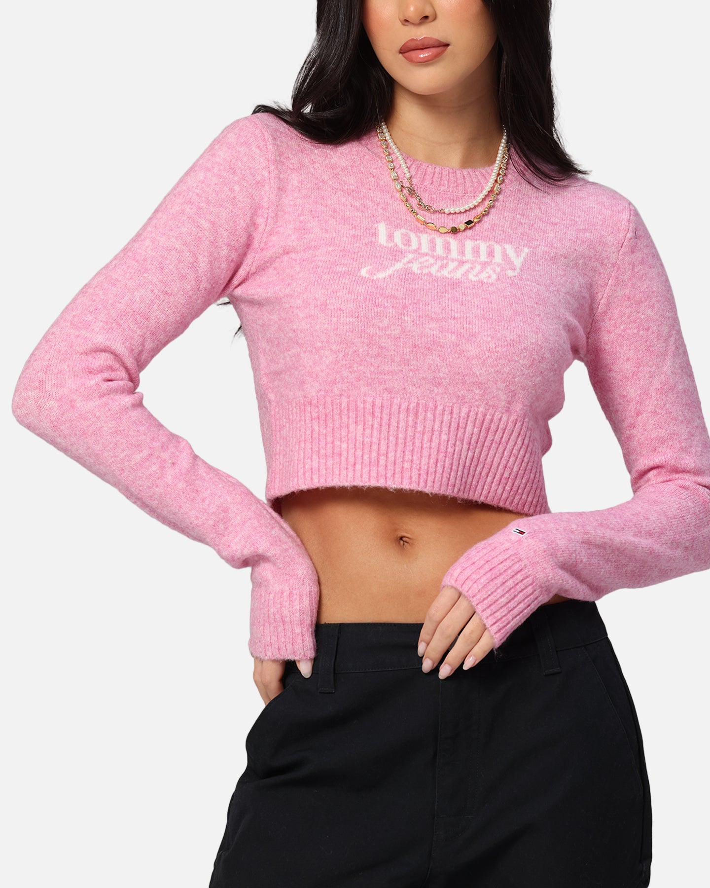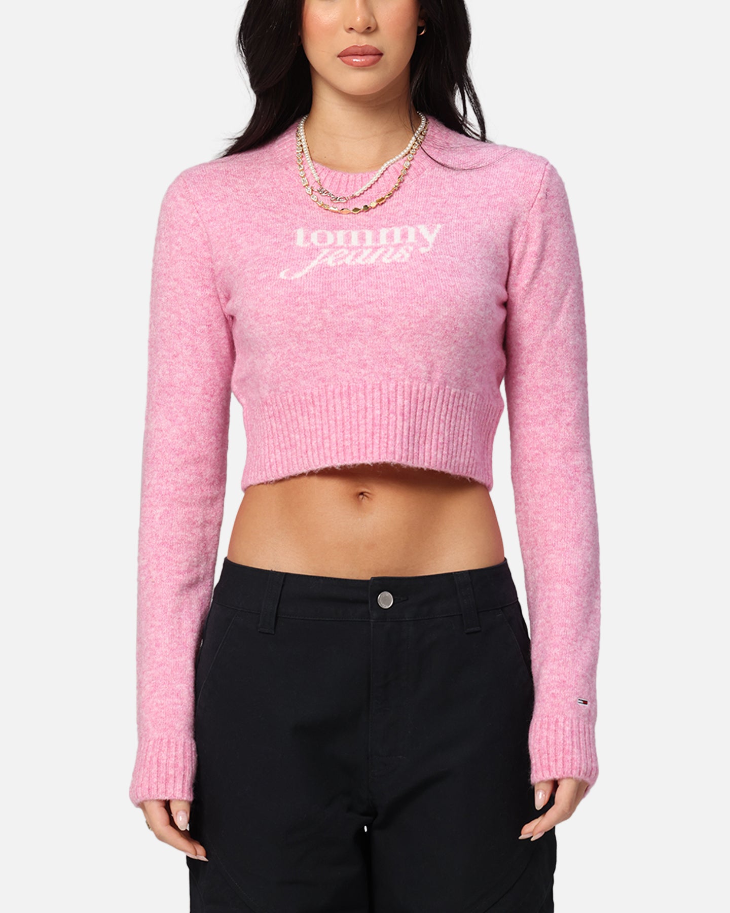Get a touch of luxe into your wardrobe with this super cute drop from Tommy Jeans that's just landed at Culture Kings. With a knit construction and cropped hem, the Women's Crop Script Sweater is finished off with the iconic woven knitted graphics and ribbed trims. Cop it today at Culture Kings.- Knitted- Knitted graphics- Ribbed trims- Dropped shoulders- Long sleeves- Cropped- Slim fit- Colour: Pink- Style: DW0DW19895_TOT