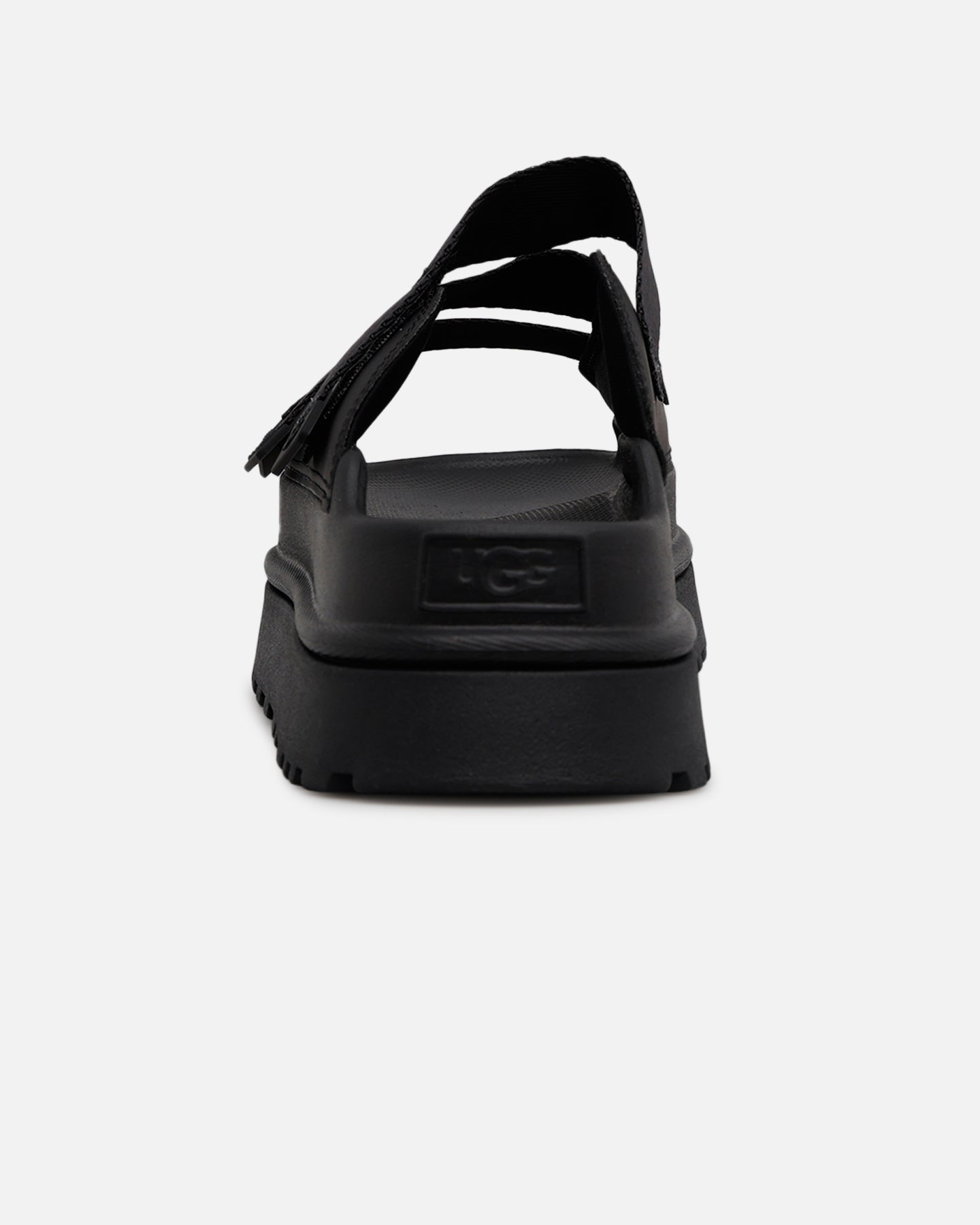 Go ahead, let yourself shine. The GoldenGlow Slide is a versatile sandal with a sunny disposition. The outsole is made with super light and springy sugarcane EVA, it's airy, easy, and bounces back. The upper features three adjustable straps made from 100% recycled fibers, so you can create the perfect fit, whether you're rocking socks or not. Cop yours today at Culture Kings.- Synthetic, Textile upper- TPU strap end with The UGG logo- Adjustable vamp straps- Hook-and-loop closure- Sugarcane EVA midsole- Sugarcane EVA outsole- Slip-on silhouette- Colour: Black- Style: 1167430-BLK