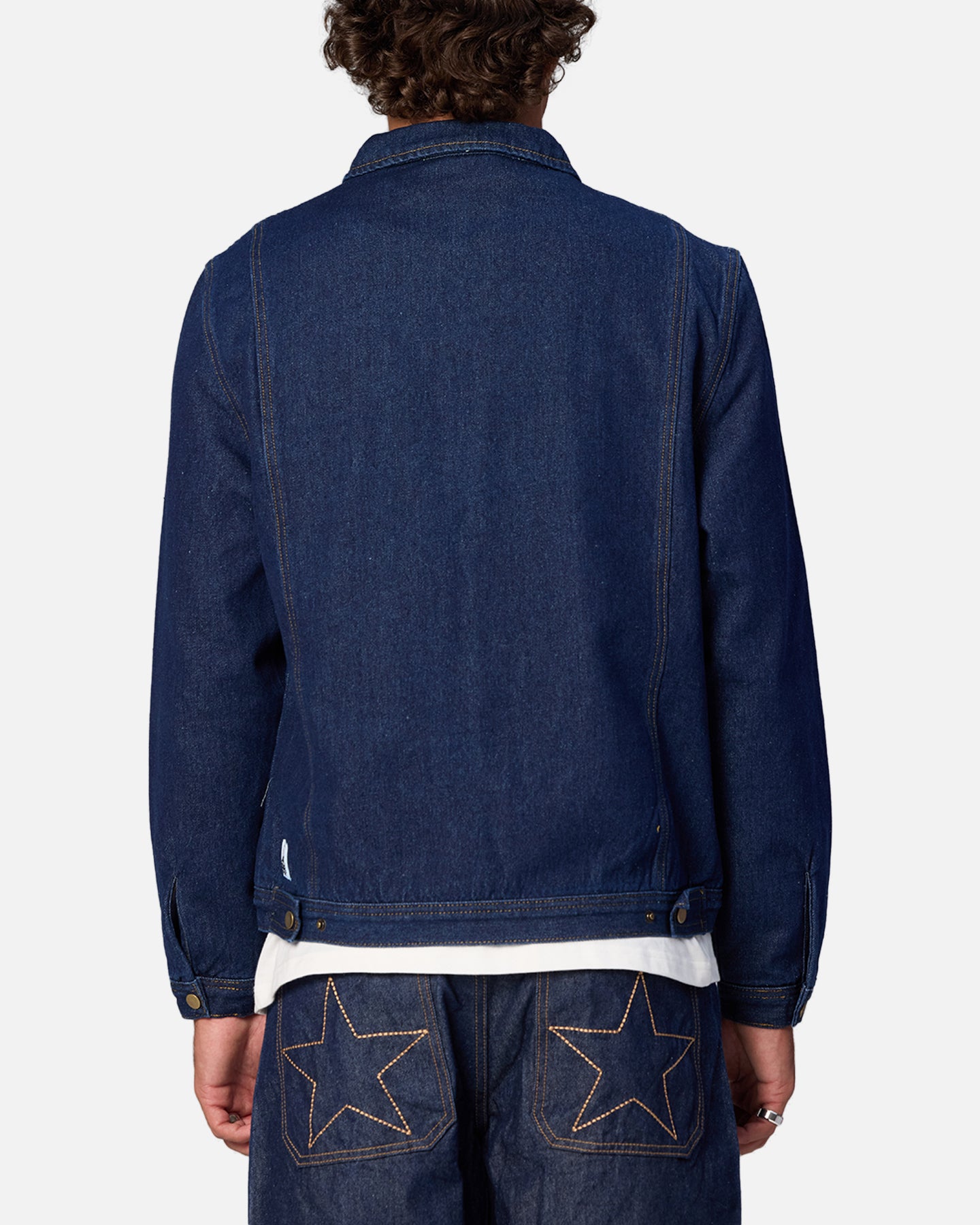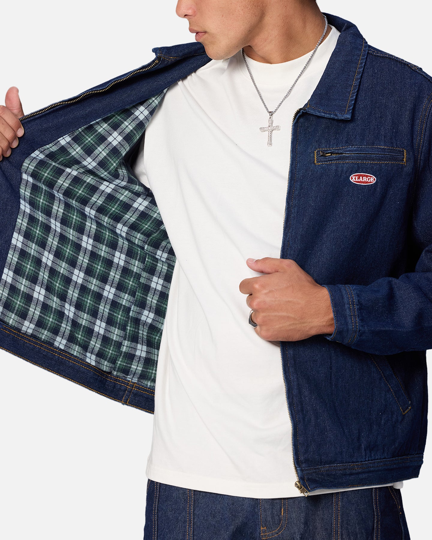 Take your fits' to the next level with the Bull Denim 91 Jacket by X-Large. Featuring a soft denim construction with a quilted lining and contrast stitching for a classic look. FInished with a full zip-up close and subtle embroidered logo. Cop yours today at Culture Kings.- Denim- Contrast stitching- Embroidered logo- Full zip-up close- Quilted lining- Collared- Dual side pocket- Single chest pocket- Colour: Dark Indigo- Style: XL025W1502