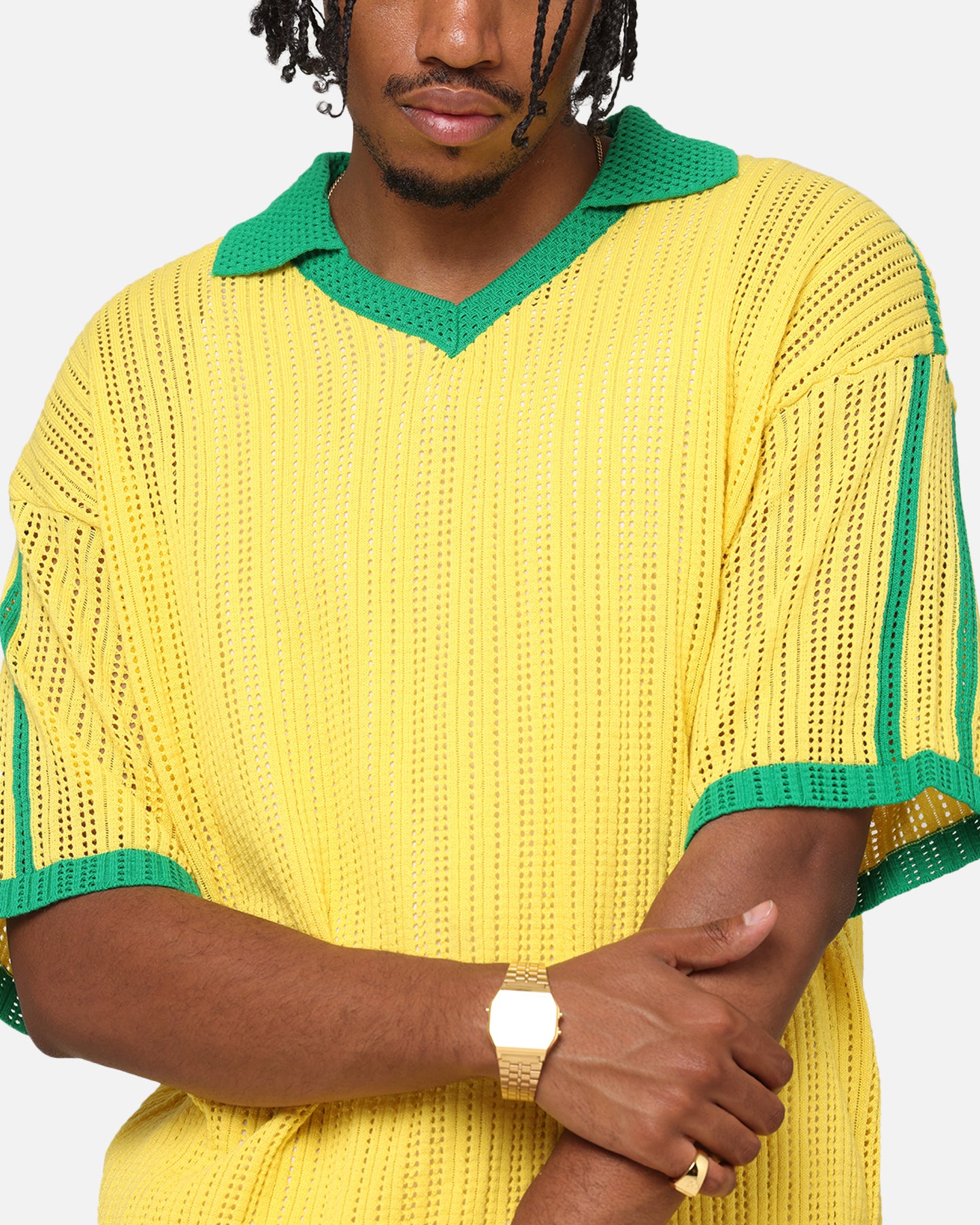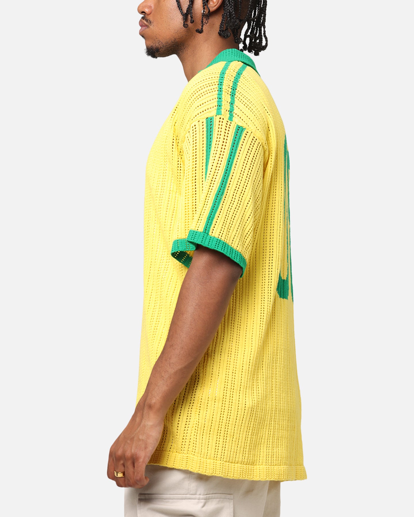 XXIII rides the insurgence of fast fashion and brings you the hottest trends as they happen. This Knit Jersey features a knitted construction for the ultimate comfort, while the twin-needle stitching and ribbed contrast collar provide extra reinforcement that is made to last. Cop yours today at Culture Kings.- Knitted- Dropped shoulders- Twin needle stitching- Contrast collar- Relaxed fit- Colour: Yellow/Green- Style: XXIIIKNITJRSY