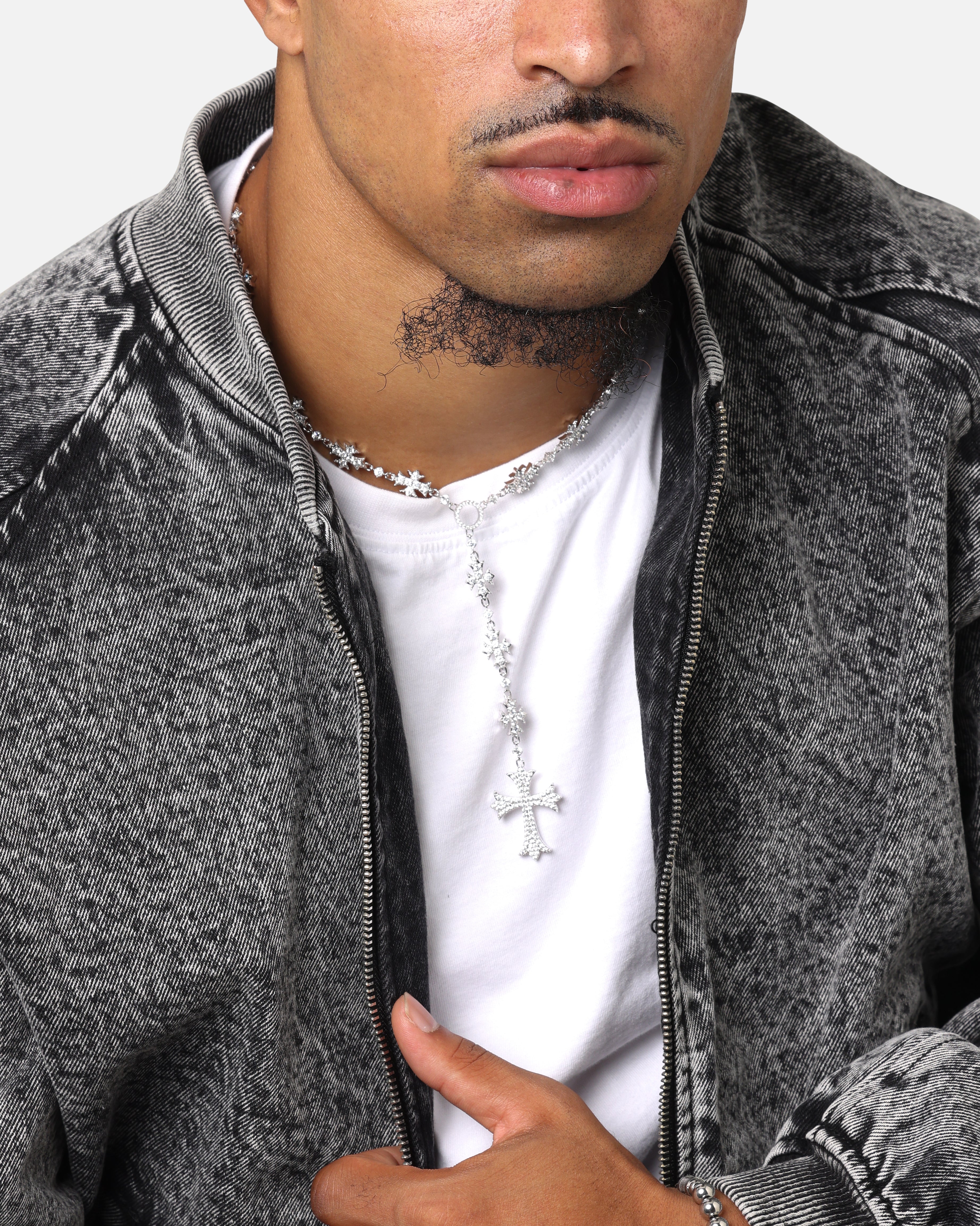 Saint Morta 6mm Iced Tennis Cross Chain White Gold