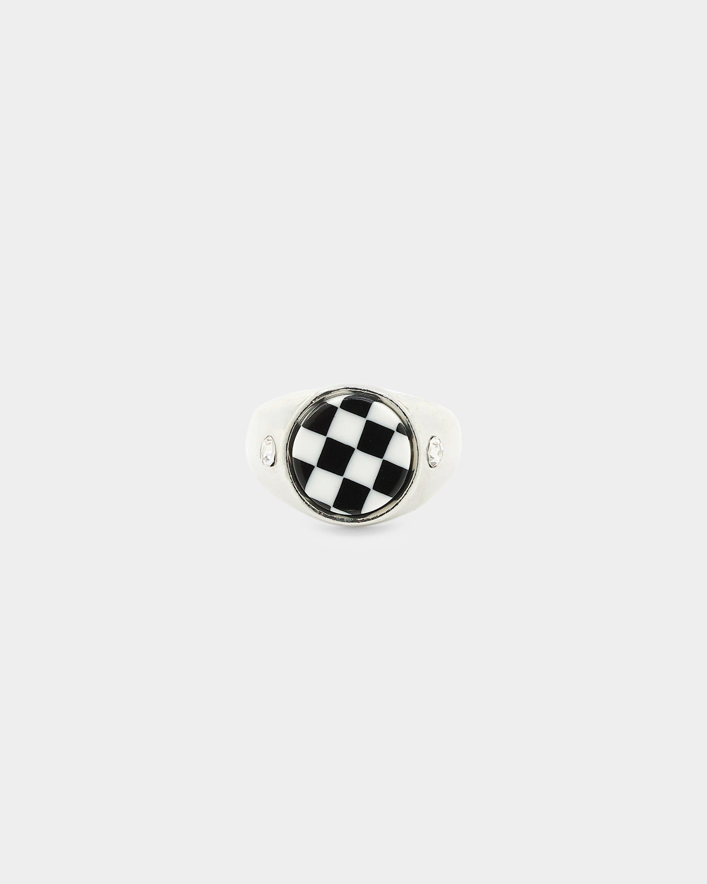Loiter Checkerboard Signet Ring Silver/Black/White