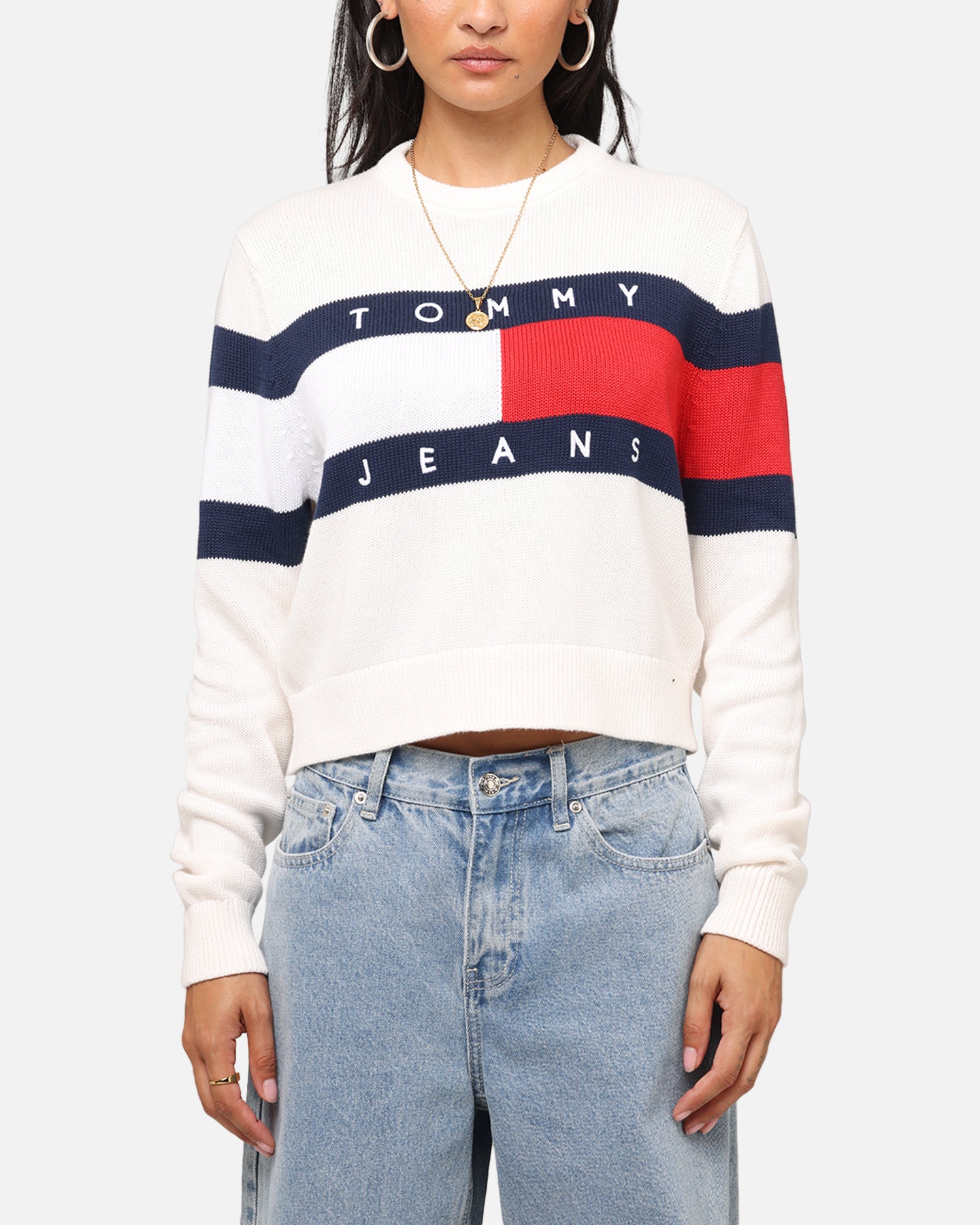 Tommy Jeans Women's Center Flag Sweater Ancient White