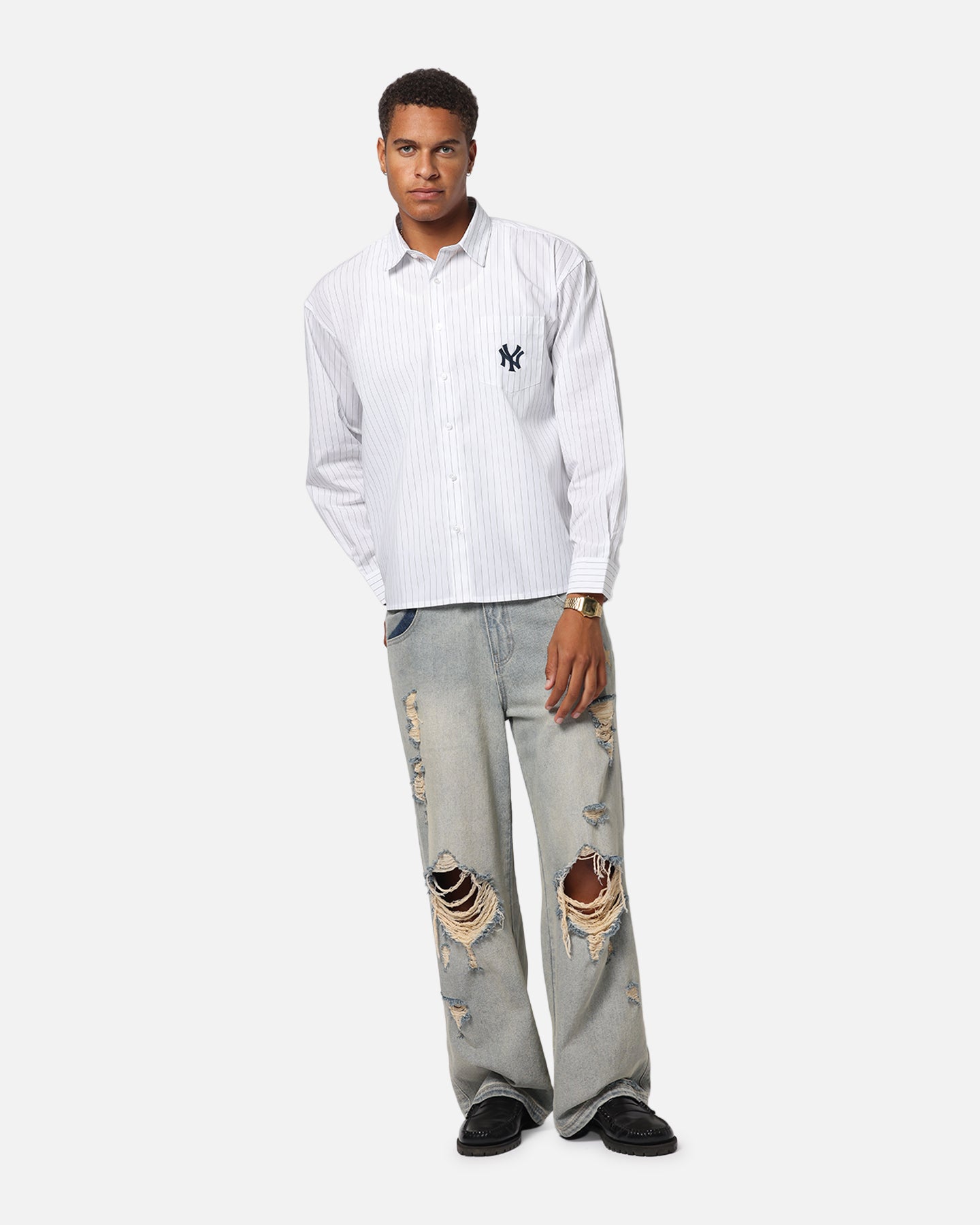 Majestic Athletic New York Yankees Pinstripe Button Up Shirt Optic White