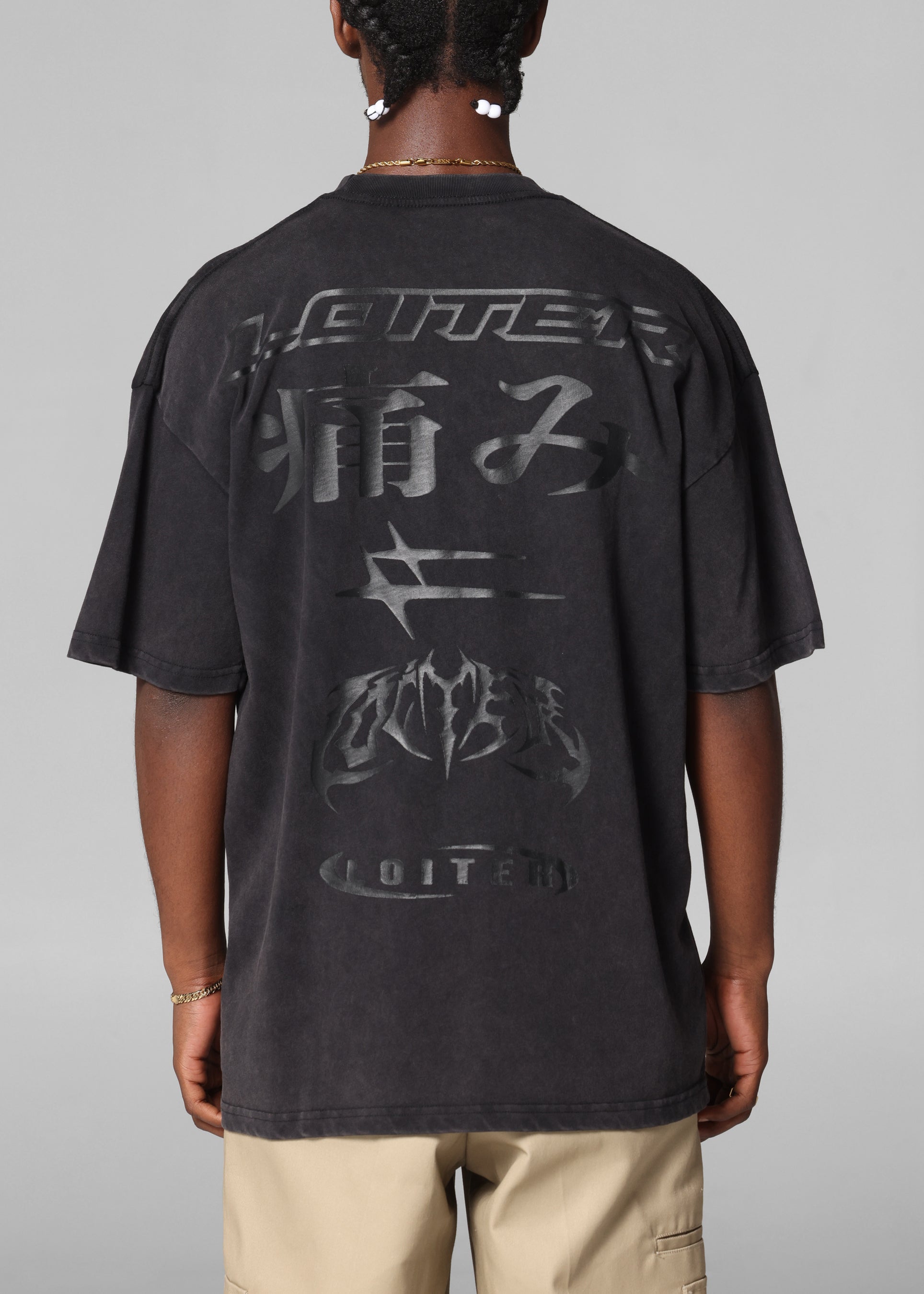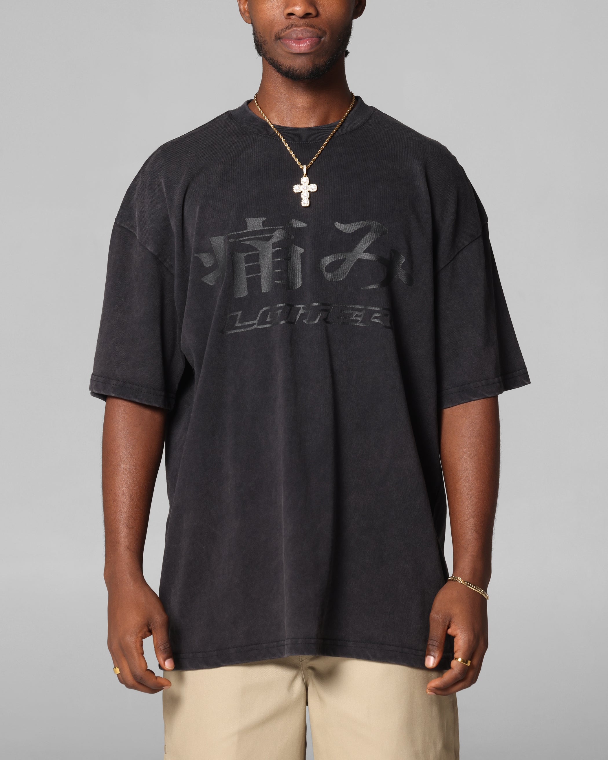 Loiter Pain T-Shirt Black Acidwash