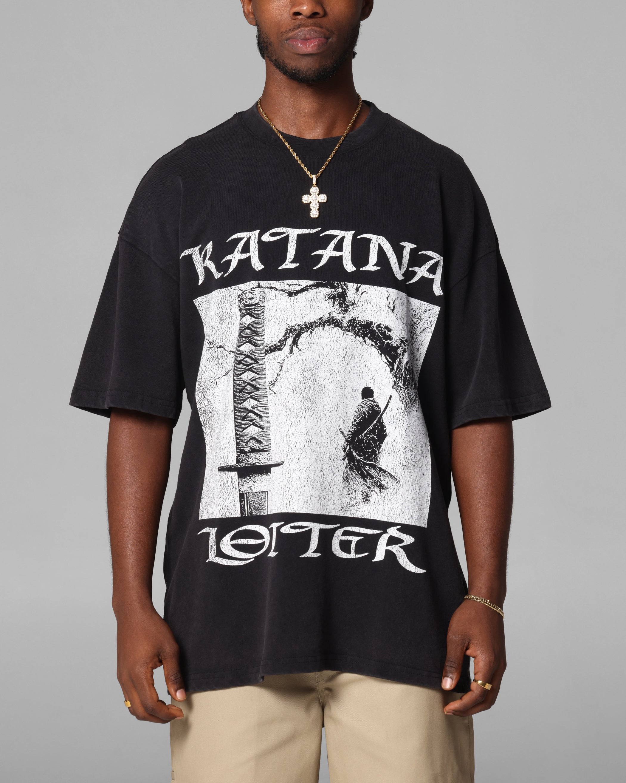 Loiter Katana Vintage T-Shirt Black Acidwash