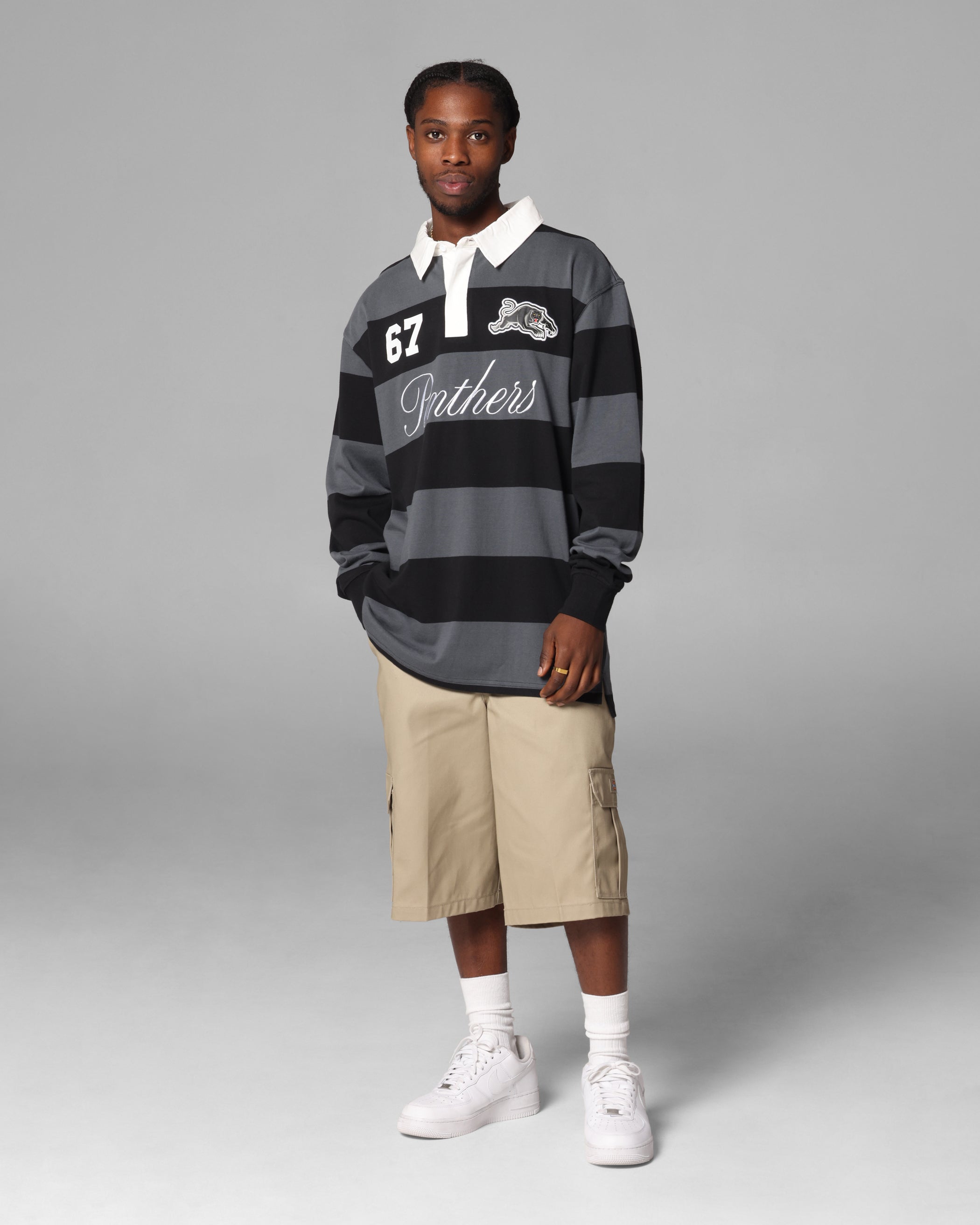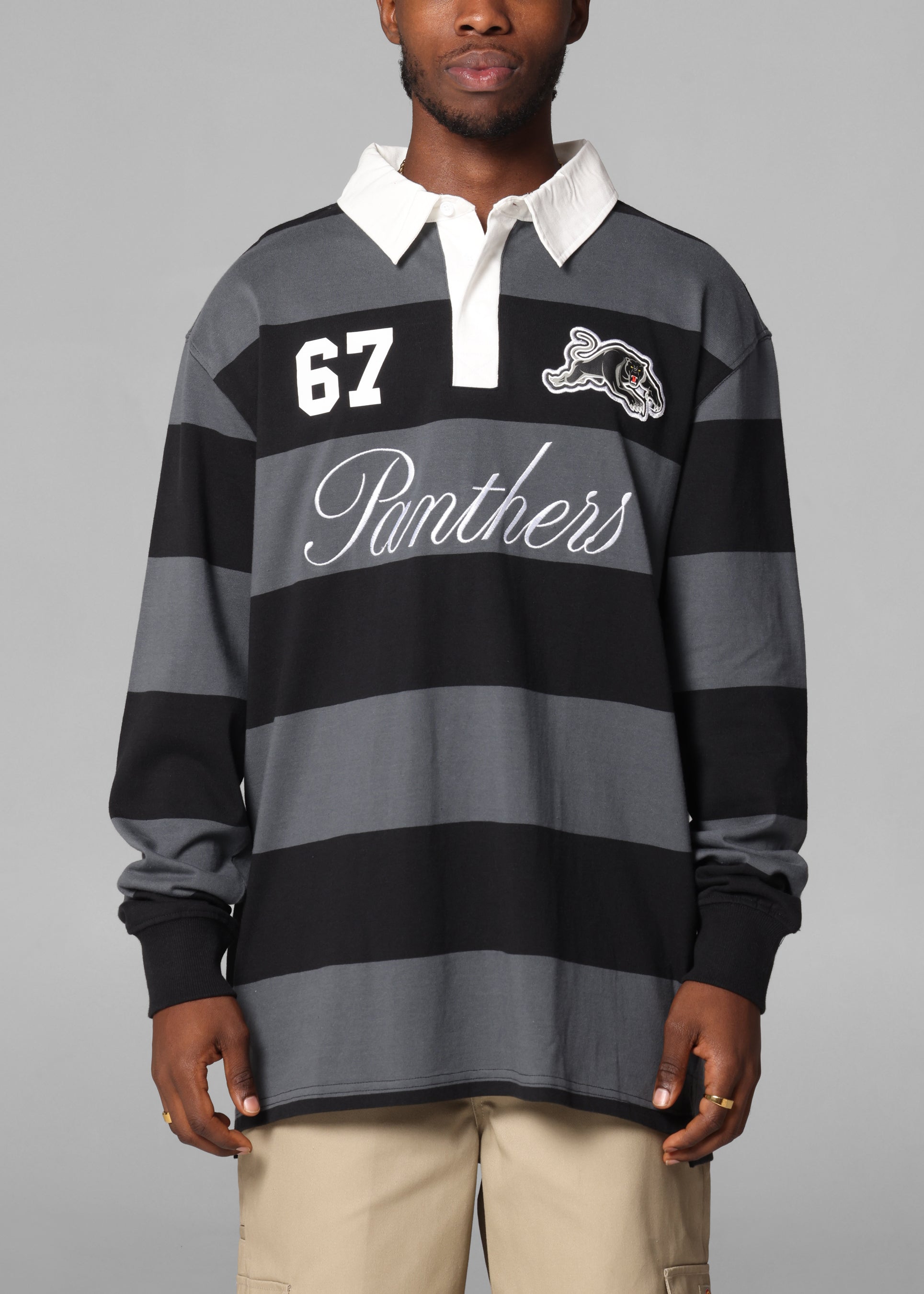 Bleacher Athletic Penrith Panthers NRL Stripe Rugby Polo Shirt Official Team Colour