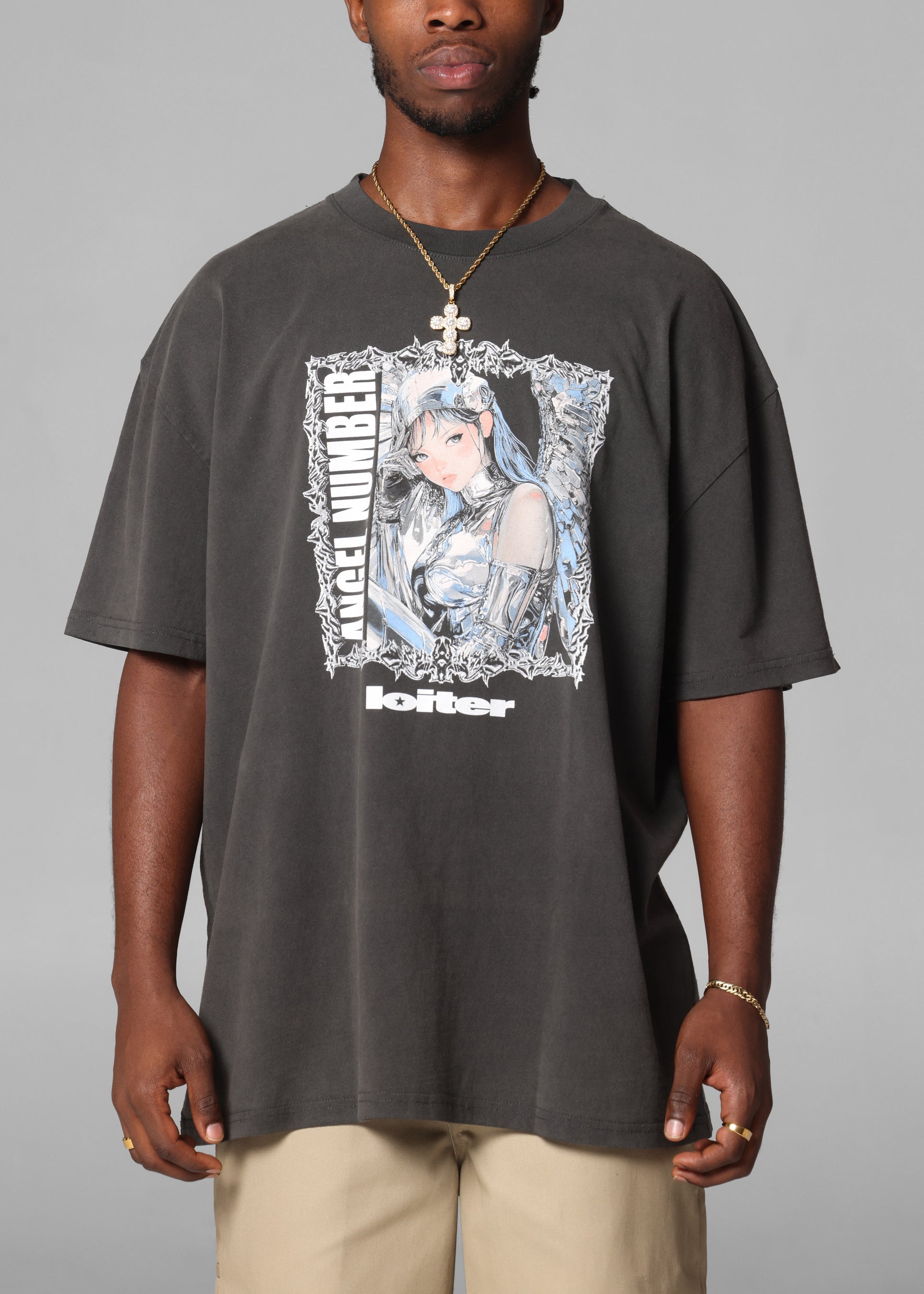 Loiter Angel Number T-Shirt Black Wash