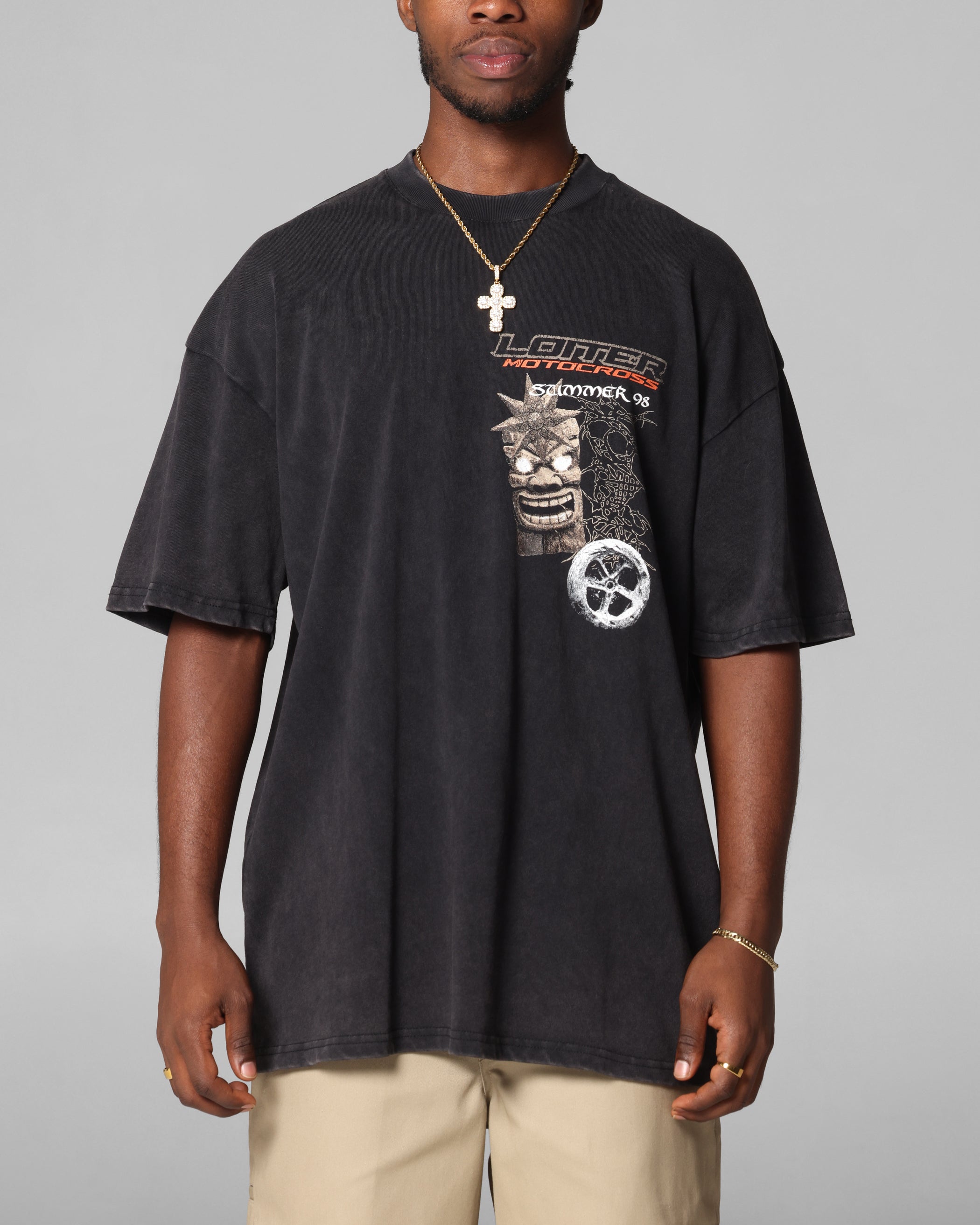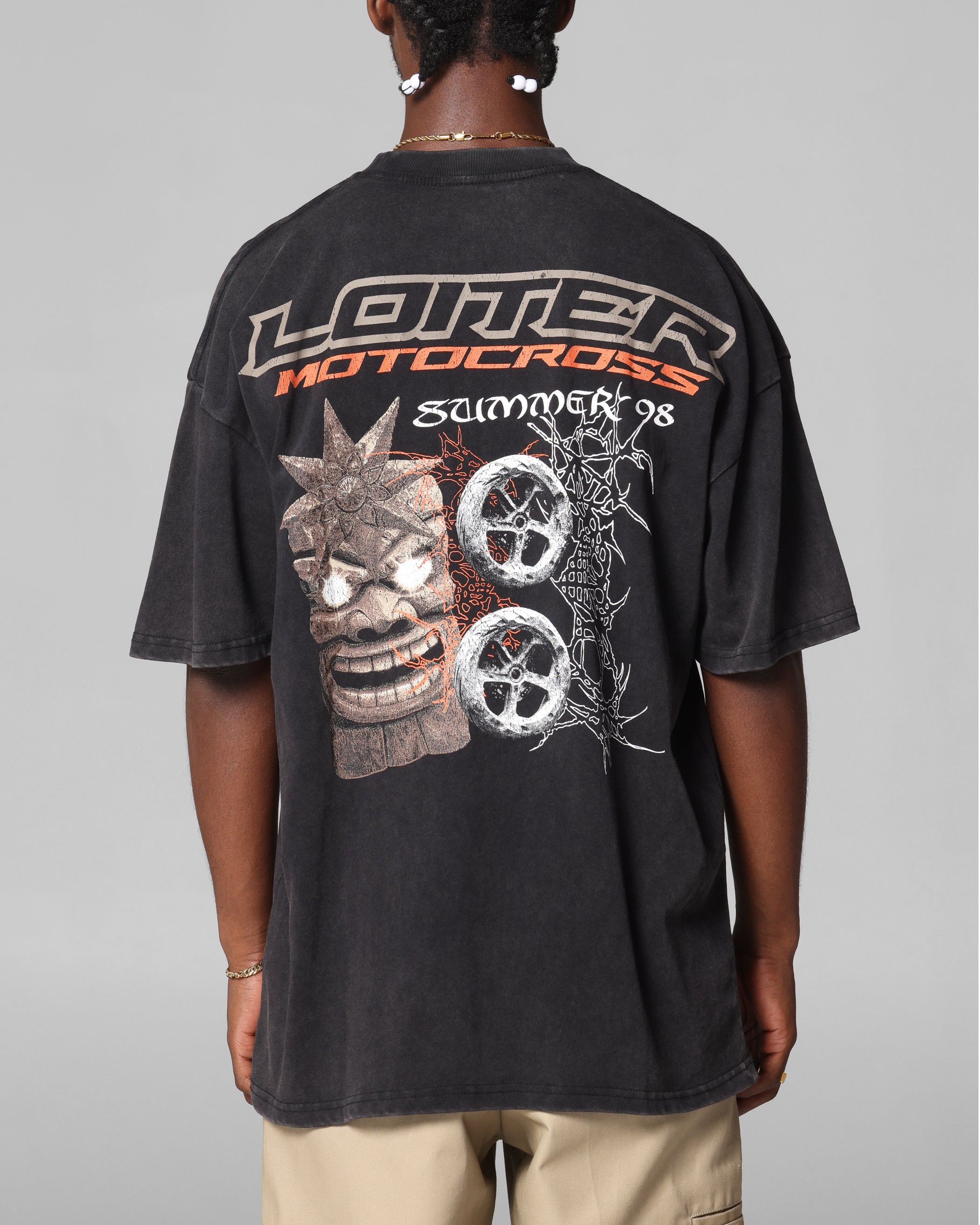 Loiter Summer Motocross T-Shirt Black Acidwash